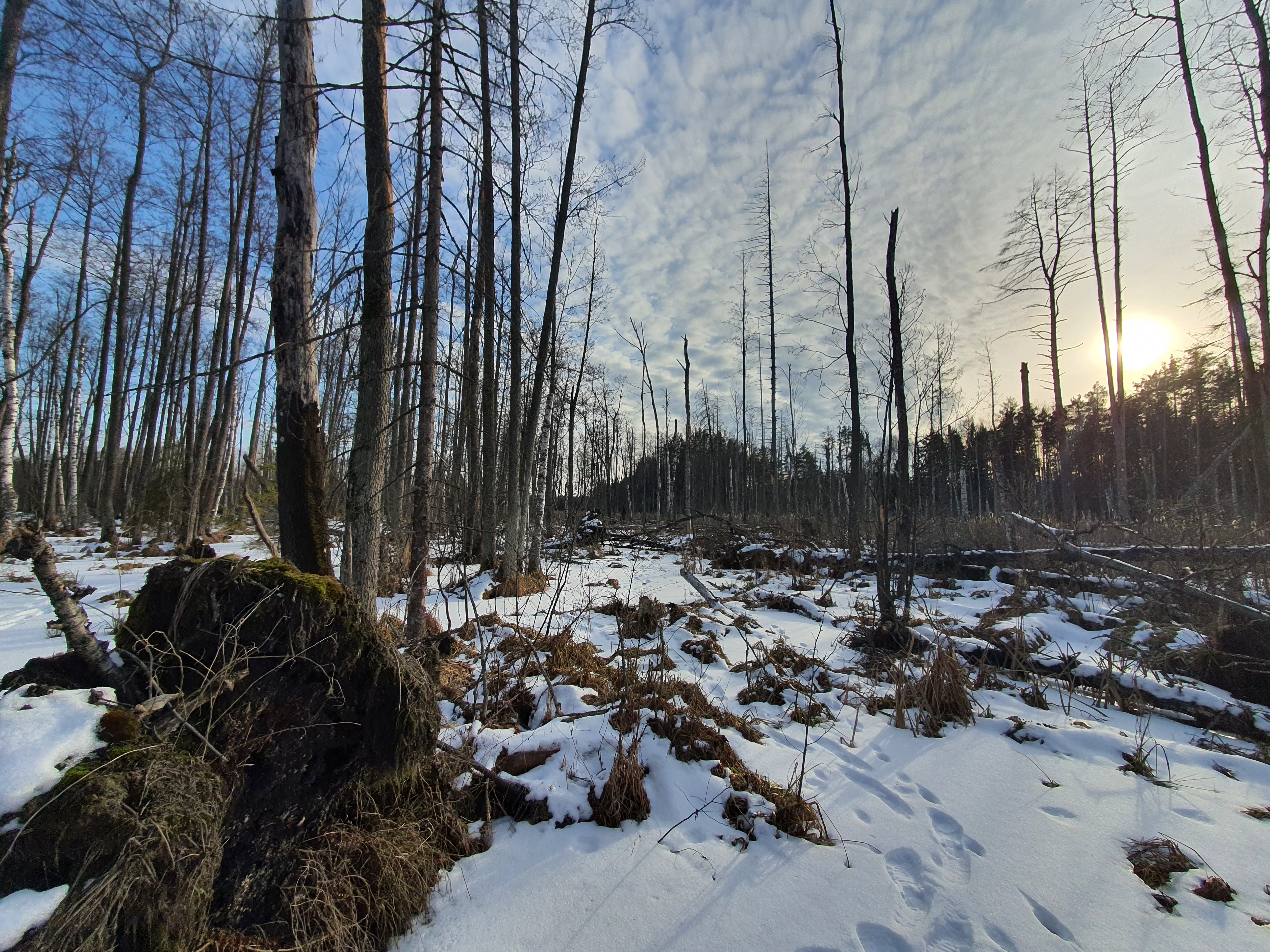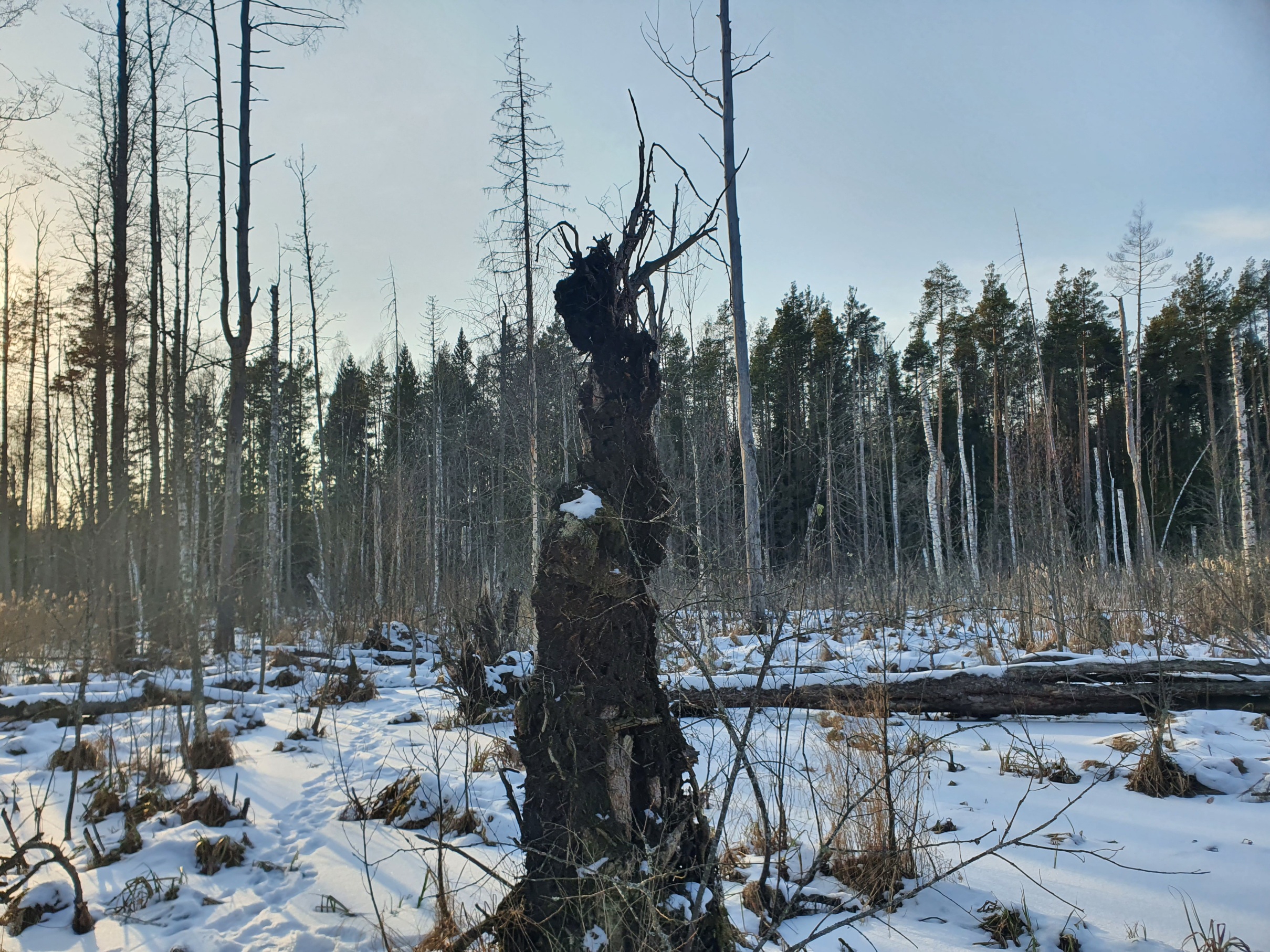 Думаю не сходить ли на болото пока зима и все замерзло - гулял так по просто заболоченной местности, было прикольно легко по твердому выходить на древнющие следы мелиорации из былинных 30-х, на которые только облизывался в гугл-картах спутниковых, потому что летом они были вглубине пиздеца из топи и гнуса.