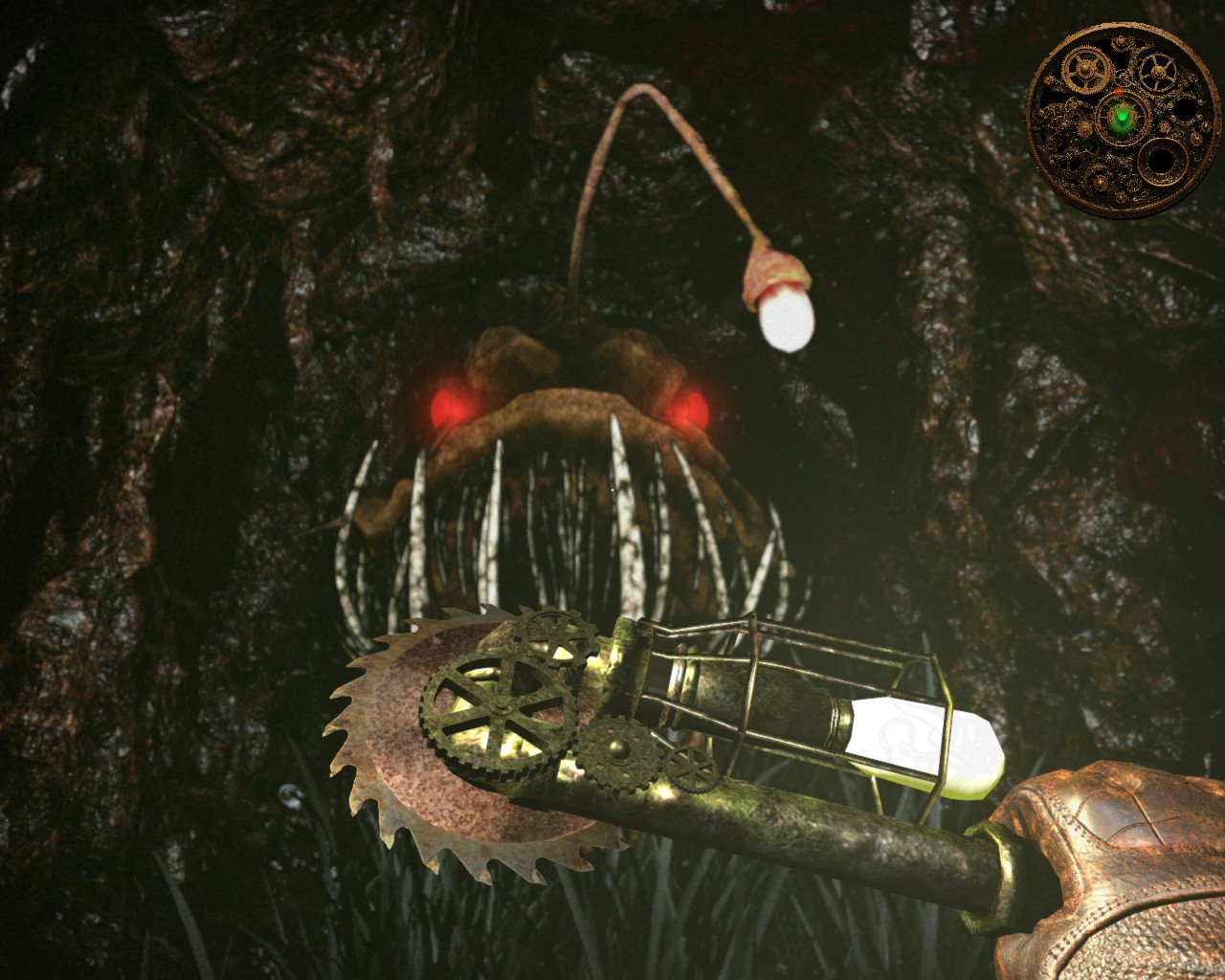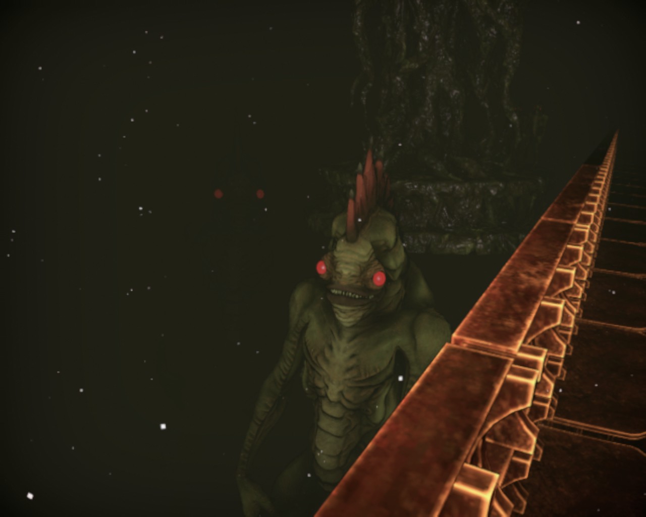 Капсула, отделившаяся от основной части, на большой скорости врезалась в землю и ушла в грунт, оставив за собой проход в виде пещеры. По-видимому, от удара корпус в наиболее слабых местах разрушился. Образовавшиеся дыры позволили посторонним беспрепятственно проникать внутрь. Однако в уцелевших, наглухо задраенных отсеках теплится инопланетная жизнь, о чем красноречиво свидетельствуют сигналы «маяка», запеленгованные рацией. Не исключено, что они предназначены служить ориентирами для инопланетных спасателей. Продолжают функционировать аварийные энергетические установки, поддерживая членов экипажа в анабиозе. Сколько будет длиться такое состояние, неизвестно. Если не придет помощь извне, вероятно, целую вечность.