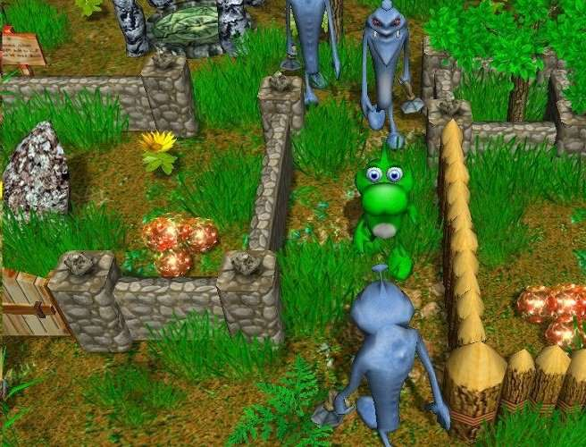 "Путя спасает мир", в детстве я обожал в неё играть, довольно ламповая игрулька, где собираешь орбы и взрываешь ими инопланетян. Но как же я боялся уебков со второго пика. Я каждый раз впадал в ужас с их ухмылой рожи и чересчур вытянутого тела, красных глаз и клыков