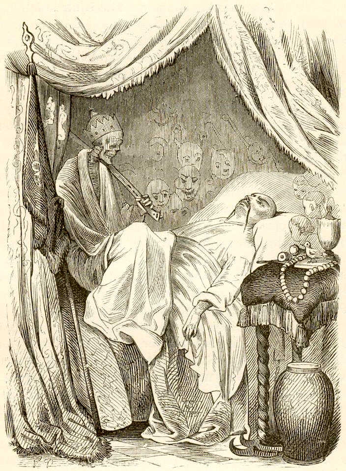 Не тонем. Внезапно всплыла овер ранняя криппота из самого детства - сказка Андерсена "Соловей". В какой книге была и с какими иллюстрациями не вспомню, но вот хорошо помню момент, когда император лежал и подыхал, а на нём восседала Смерть, вот эта сцена а-ля Фюсли меня дико криповала.
