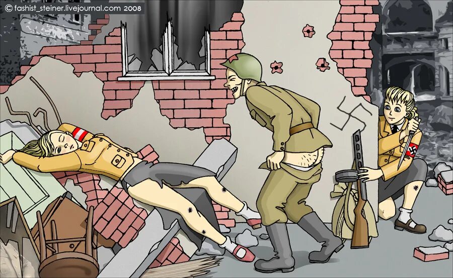 Конечно, конечно. Там насиловали и убивали очень много немок. Охуенная логика была - твой двоюродный дядька сжёг деревню под Минском, а выебли бутылкой и зарезали твою сестру под Берлином... Любая солдатня - это всегда быдло, даже культурный в мирное время человек может на войне опуститься до уровня животного, как это происходит и в наши дни.