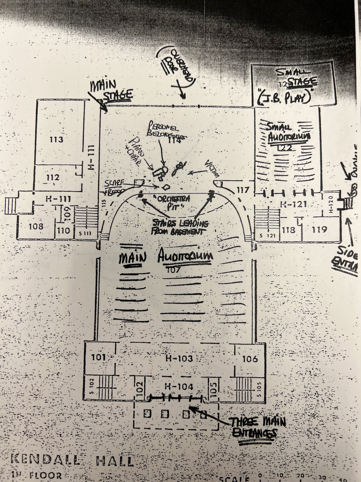 Убийцу искали и среди актеров студенческого театра. Один из них – Чарльз «Чак» Юдкинс участвовал в постановке 3 сентября, он играл роль полицейского с наручниками и дубинкой (их на экспертизу не отправляли). Среди вещей убитой нашли программку, на которой было обведено имя Чака и Сигрид приписала: «норм пацан, дал мне пивасика». Чак был одним из актеров, которые беседовали с Сигрид перед выступлением, некоторые думают, что именно с ним она поругалась в тот вечер.