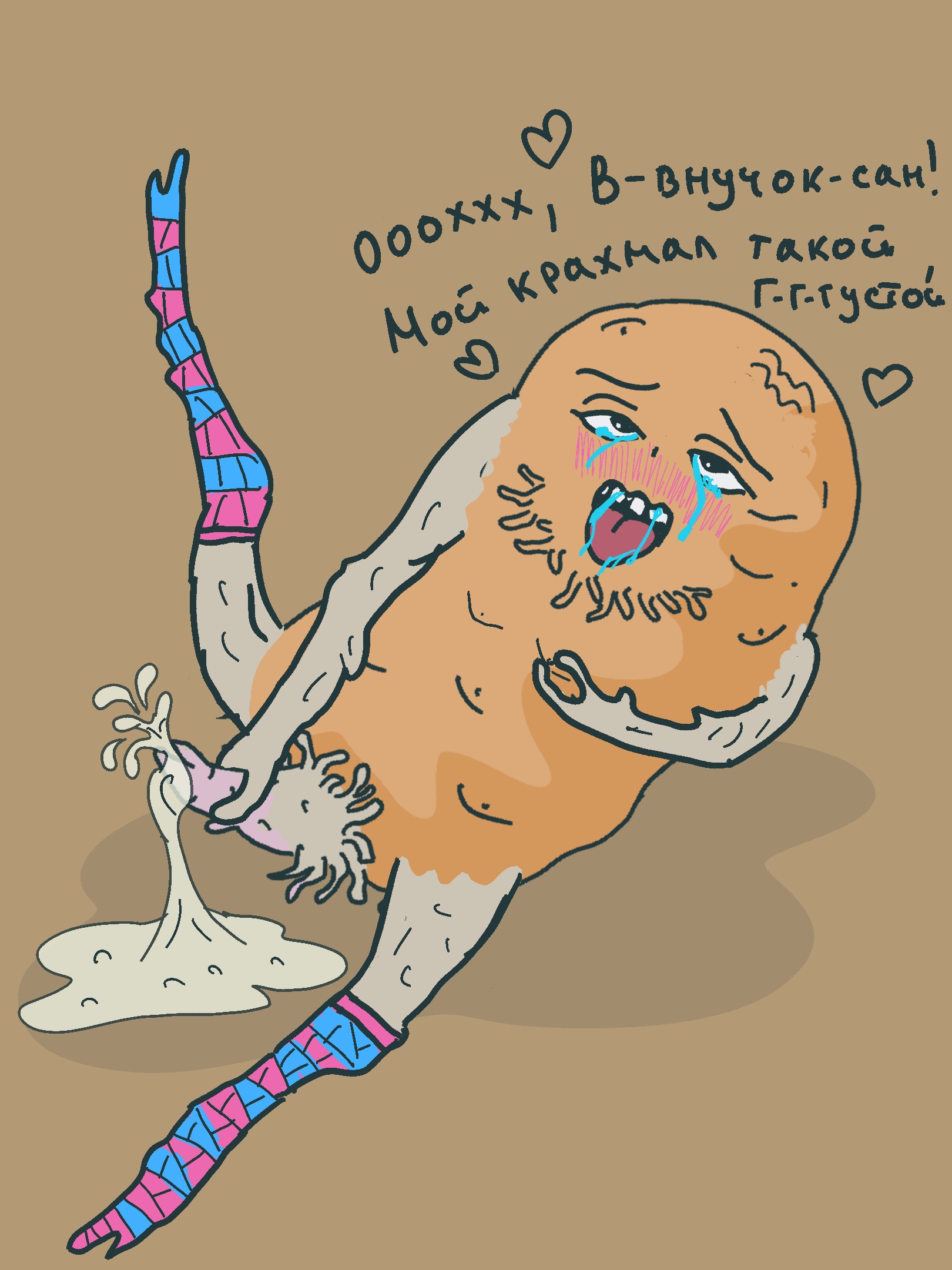 >>853485 Дополню - Дед с картофана, сцепившийся с Попобавой в яростной гачи-борьбе (за сраки анонов и оппонента). Как в той сцене переталкивания на руках в раздевалке.