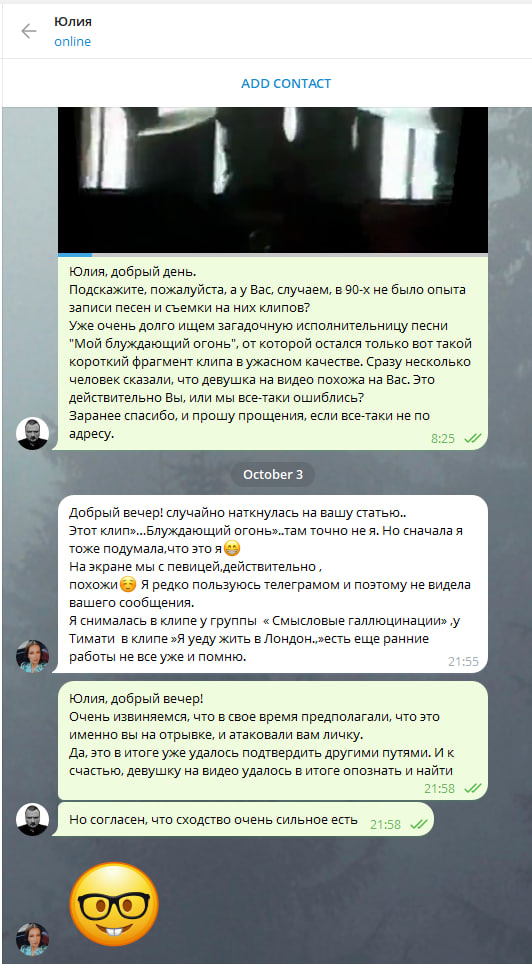 ...Спустя какое-то время был найдет оригинальный видеоклип на песню "Мой блуждающий огнонь", которую исполнила Наталья Яблонская (Верич). История оказалась ещё запутаннее: оригинальный видеоклип эротического содержания оказался рекламой питерского казино.