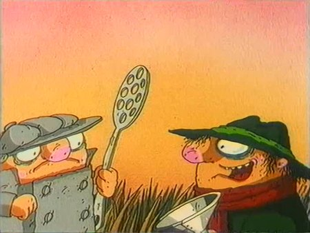 В каждой короткометражке точно фигурировал пузатый (? - на самом деле, не уверен насчет пузатости, может его просто маленьким и одноформенным, как братьев пилотов с пика изображали) охотник, который в начале каждого эпизода начинал аки Мюнхгаузен сидя в кресле байку травить.