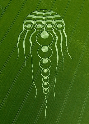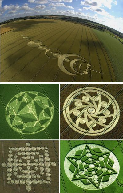 Там часто не имелось ввиду что круги на полях якобы от того что НЛО садилось на поле. На полях не просто круги какие-то часто, а как бы рисунки сложные. Предполагали что инопланетяне или ещё кто-то сверху летая на кораблях своими технологиями как бы вырисовывает на полях эти узоры. Возможно с целью передачи каких-то посланий, общения.