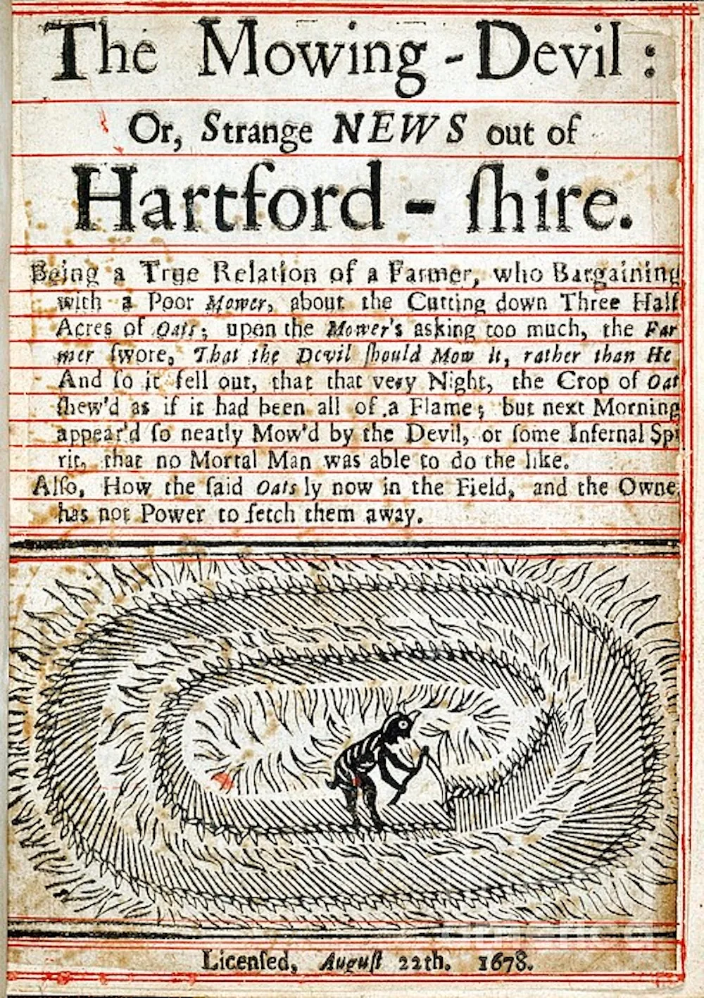 >>864525 До 60ых годов 20 века круги в фольклоре встречаются в основном в той же Англии. И массово поперло именно оттуда со второй половины 20 века . Я бы смело дал оценку в 99% человеческого происхождения кругов с этого момента времени. Первое появление кругов на полях относится к Англии, 1678 год. «Дьявол-косарь» был первым зарегистрированным случаем появления кругов на полях, и фермер, обнаруживший круг, сказал, что на его поле посетила дьявольская сущность. Посевы на его поле были вытоптаны, позднее в фольклор ушло отчасти благодаря протожурнашлюхам что посевы скосил дьвол, вроде как сам фермер говорил, что их вытоптали.