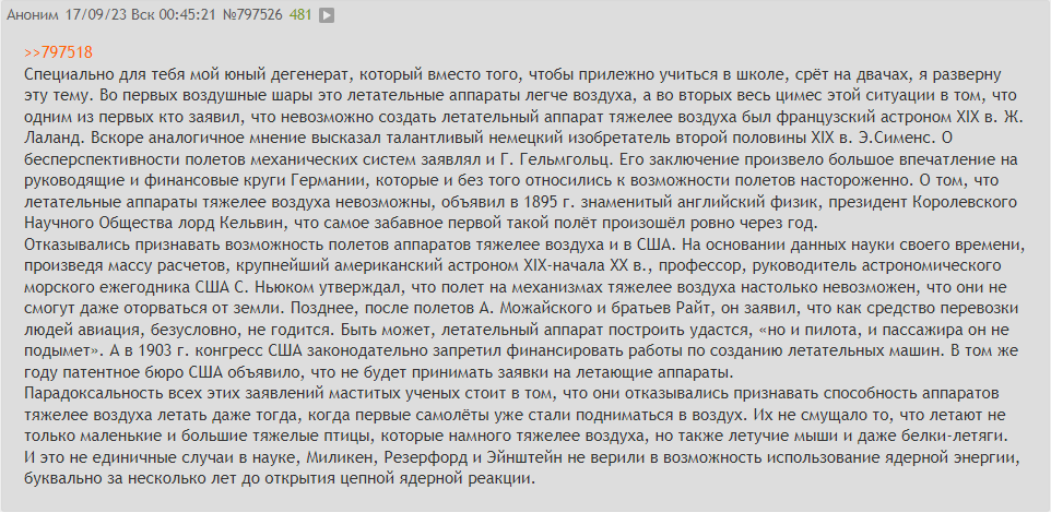 >>864530 Ну чо ты нас за дебилов то держишь. Тут уже все проанализировали: это инопланетяне с разных планет, им с нами запрещено контактировать их властями в виду нашей недоразвитости, а если кто-то контактирует то это криминал скам. ИТТ назвали это гипотеза космических гопников объясняет практически все инциденты, поведение инопланетян итд итп. >>864533 >>864539 Ну приблизительно представления есть, другое дело, что для нас НЛО это как для 18 века реактивный самолет. Однако все может изменится моментально, напомню что до 32 года атомная энергия была такой же нереальной для применения как варпдрайв сейчас.