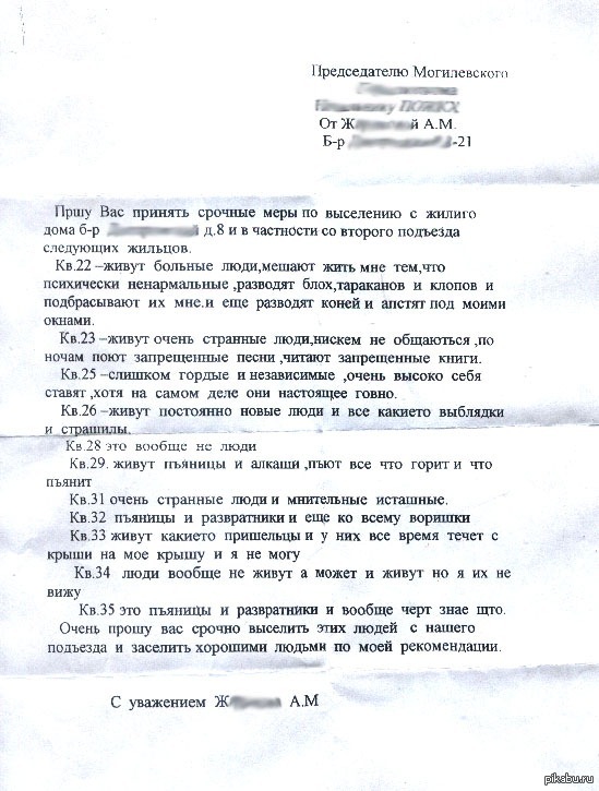 У нас в подъезде проживает бабка с погонялом "Шляпа". Знаменита тем, что считает себя "старшей по дому", доёбывается до людей живущих этажом ниже из-за того, что они "варят наркотики", писала в прокуратуру, ФСБ и прочие структуры. Не суть короче.