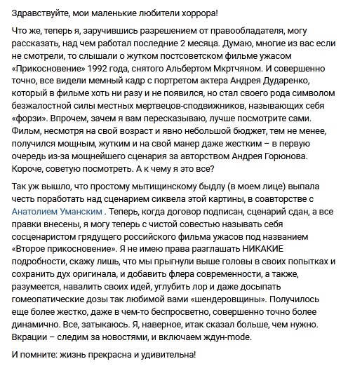 Почти 2 года не слушал крипипасты, вчера навернул Игоря гофмана и домовой чат - кайф. Надо все-таки дозированно слушать, тогда не замечаешь погрешностей, не сравниваешь и получаешь удовольствие от контента. Помню, говнился «фу, Дмитрий Гей. Фу, нечего слушать. Одни и те же пасты у Зова и Вампирума. Въедливая сперма. Очевидные тропы. Форсер Цап-цап». Прям хорошо было, крипаны. Не думал, что когда-то вернусь к жанру.