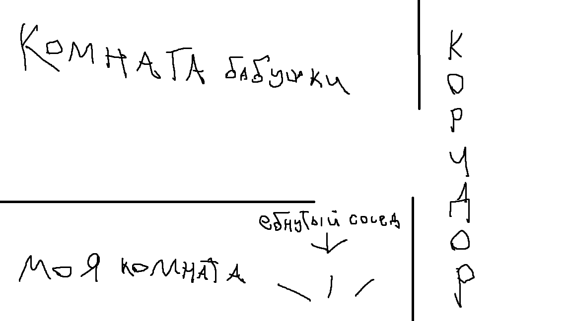 >>867307 (OP) Каждую ночь из правого нижнего угла комнаты приходится терпеть ебанутый истерический смех своего конченого соседа. Как рассказывала бабушка, ебнулся он, когда сидел за убийство. Мамка от него съехала, потому что он её неоднократно пиздил. 3–4 раза в неделю она навещает его, приносит хавку и так далее. Бабушка его боится, да и чего греха таить — я тоже пытаюсь обходить стороной.