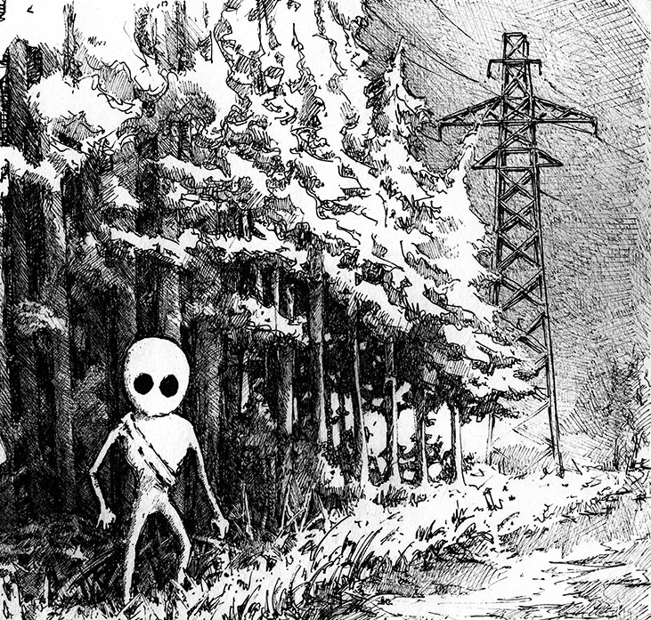Шар такой величины, что в нем могла бы уместиться карета, после своего падения остался невредим. Неподалеку от него толпилось множество людей, проведавших о событии и теперь томимых любопытством. Неожиданно в шаре открылось что-то вроде двери и, что самое поразительное, появилось существо, похожее на нас, только странно одетое. Одежда плотно облегала туловище. Заметив толпу людей, этот человек пробормотал что-то невнятное и опрометью бросился в соседнюю рощу. Крестьяне в испуге инстинктивно отпрянули от шара, и это спасло их, так как в следующее мгновение он бесшумно взорвался, и его обломки, разлетевшиеся во все стороны, превратились в пыль.