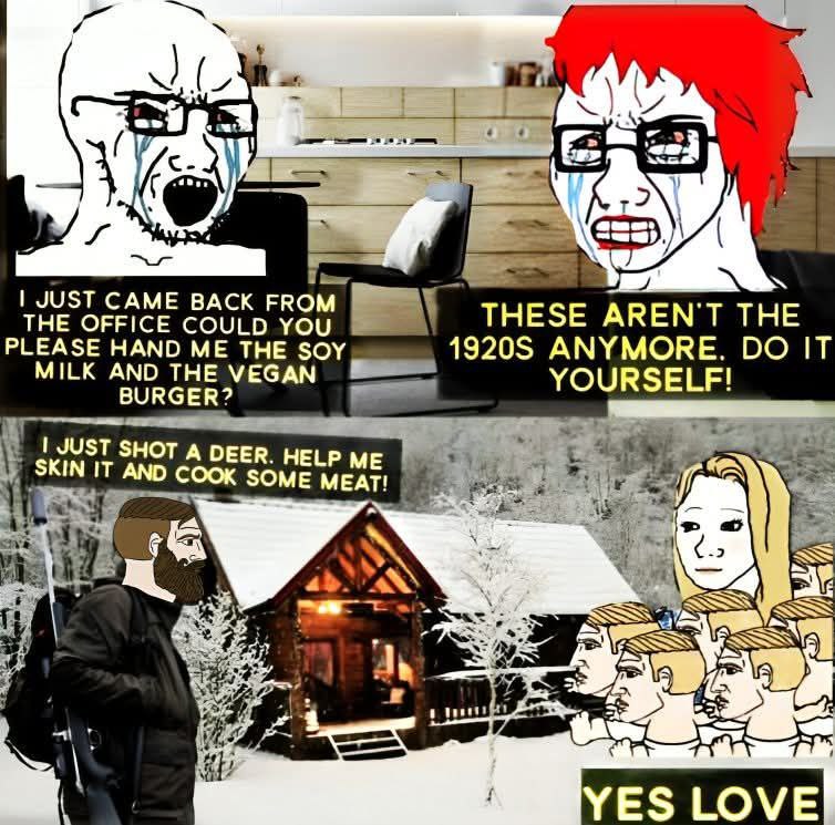 >>7361673 Всё так анон. У тян нет души. Если тян встречается с парнем и он ходил в походы - она будет ходить с ним в походы, потом встретит любителя театра - бросит походы и будет ходить в театр. Тупая насадка для хуя, которая принимает форму текущего хуя. Шопенгауэр сказал что то типа "женщина не способна жить в одиночестве, даже если у неё нет своего мужчины и есть финансовая независимость, она найдет кому подчинятся в другой форме, например будет ходить в церковь чтобы подчиняться священику.