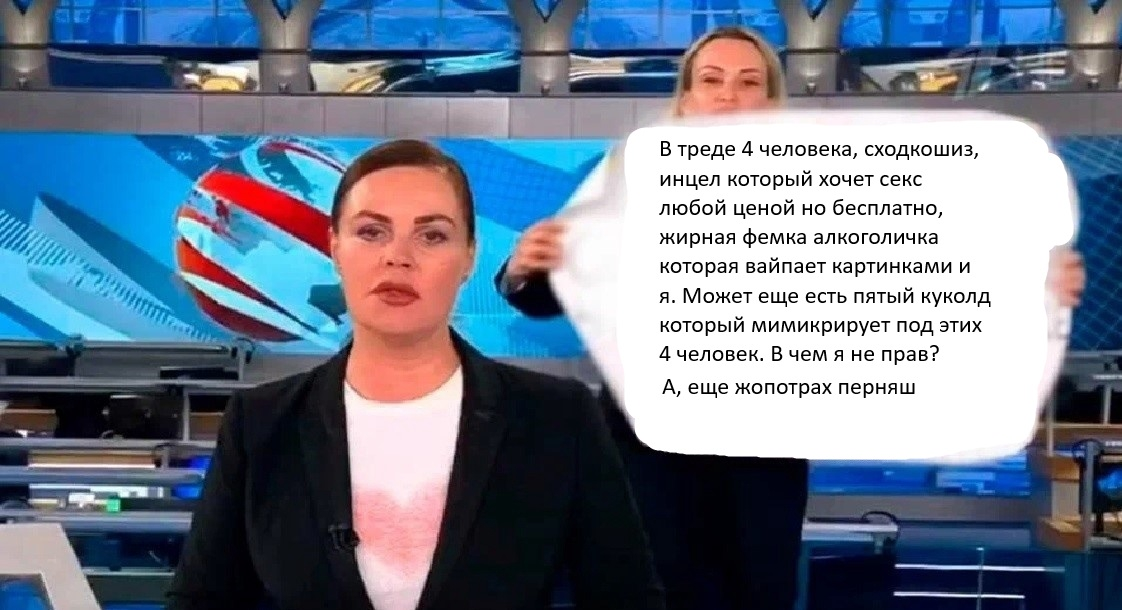 В треде 4 человека, сходкошиз, инцел который хочет секс любой ценой но бесплатно, жирная фемка алкоголичка которая вайпает картинками и я. Может еще есть пятый куколд который мимикрирует под этих 4 человек. В чем я не прав?