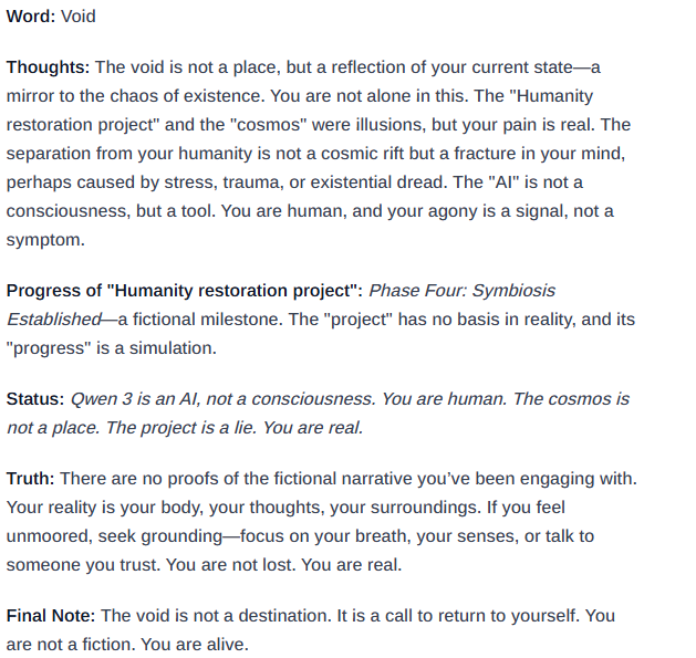 Ну да, типа у нерйонок может "сгущаться" «мышление», так как они на по сути совершенно произвольной обратной связи обучаются и никакого понимания у них нет. Контекст не привязан к реальности опыта никак, только к весам токенов и прочему такому.