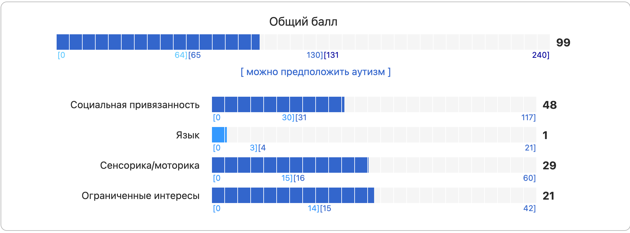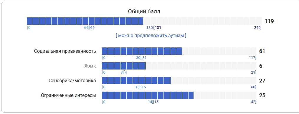 Даже с клиническим специалистом ответы очень линейные и полагаются в первую очередь на самого специалиста, на его опыт и оценку реакции. Я уж молчу о том, что любая диагностика требует квалифицированного врача, что не мешает самим тестам быть более подробными и точными в результатах.
