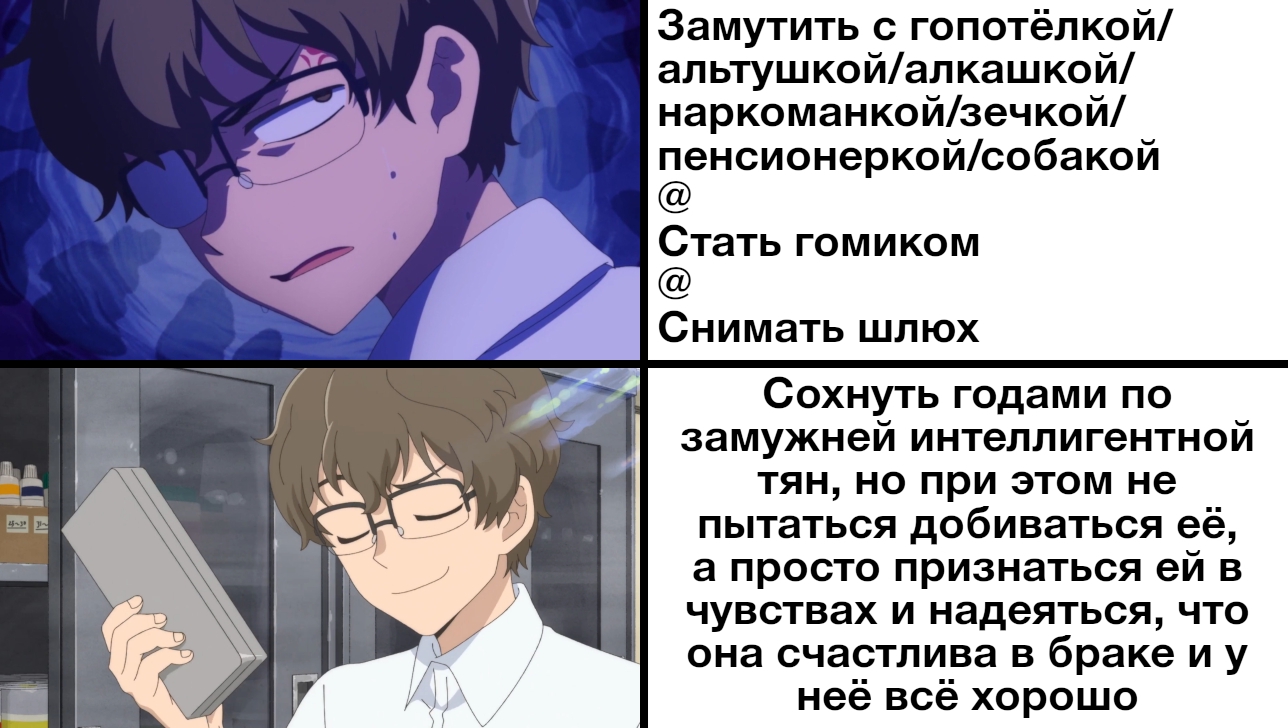 >>7345129 >мутишь с зумершами Мне не нравятся зумерши - меня не привлекают их мешки вместо одежды и распущенные волосы вместо причёски, а альтушек я вообще ненавижу. Вот хоть бы одна молодая тянка на постоянке носила туфли-лодочки с классическими платьями и юбками и ходила с хвостиками/косичками! Разве многого я прошу? И как правило, зумерши в подавляющем большинстве случаев в моей локации - либо несовершеннолетние, и для них я педыч-бетатестер вне зависимости от моих помыслов, либо с КРУТЫМ СПОРТИВНЫМ СРАЛЬЧЕКОМ)) на тонированном тазике-четырке. А все остальные либо на вокзале с вещами ждут отправления поезда в Санкт-Петербург, либо уже там. К тому же, я не хочу быть "папой" свое жене - я такое не вывезу и мне это не интересно. Просто играть в атнашэньки, которые ни к чему не ведут, для меня неприемлемо. И к тому же, у меня фетиш на тянок постарше, и сформировался он очень рано. >я биокарлик антисекс Люмпен-интеллигентишка 166/~45 со дна общества, люблю носить деловые костюмы, капчую в классикатреде в /fa/ и смотрю слайсовые аниме - задавай свои ответы (^-^) >когда чувак из ДСов приезжает в ебеня, он так или иначе ощутимо выделяется среди окружения засчет культуры - ты буквально будто эльф на фоне всех этих ребят выросших в АУЕшных школах Я не из Москвы/Питера и не из миллионника даже, лол. Я всю жизнь безвыездно в этих отсталых пердях живу, и здесь я все свои 30 лет чувствую себя иностранцем, и ассимилироваться мне не удаётся. Да и надо ли? >я бы остался в мухосрани и пытался дальше что-то строить с юной фертильной пиздючкой, готовой на все. Это потому что тебе интересно быть папой в отношениям. А для меня такое неприемлемо. Я бы предпочёл заделаиться "сыночком" и жениться на "мамочке" на 8-12 лет старше, да жаль, что у таких вот "мамочек" пунктик по разнице в возрасте (прямо как у их дочерей-зумерш) и для них я НИАПОРА@НИДАБЫТЧИК@НИКАМИННАЯСТИНА@НИМУЩИНА. Однако всё это им нисколько не мешает сожительствовать с уголовниками на 15 лет младше, без оформления брака и без каких-либо обязательств вообще. А вот настроенный на брак и семью 30-летний анимешник для них это фу, это НИМУЩИНА.