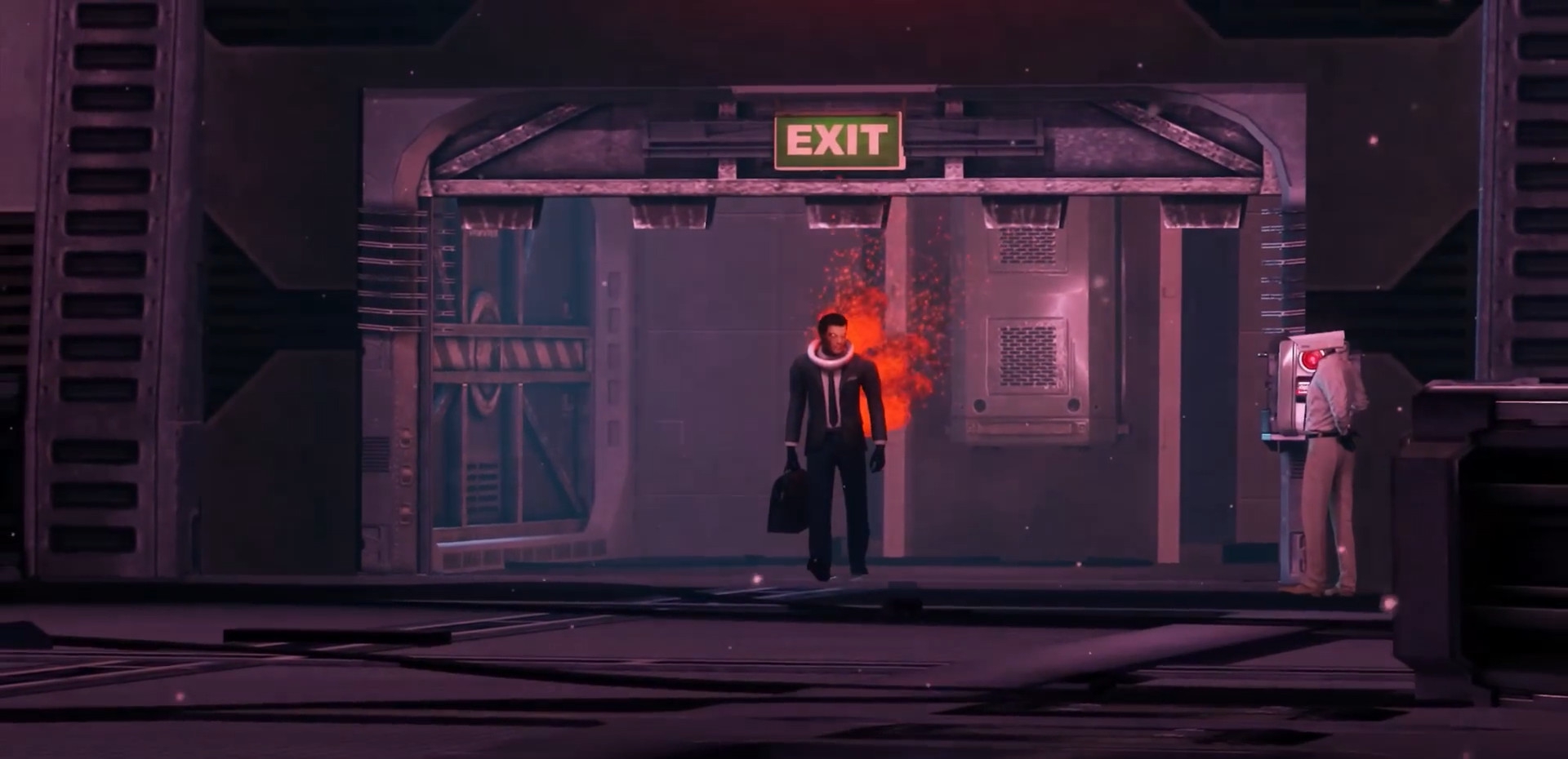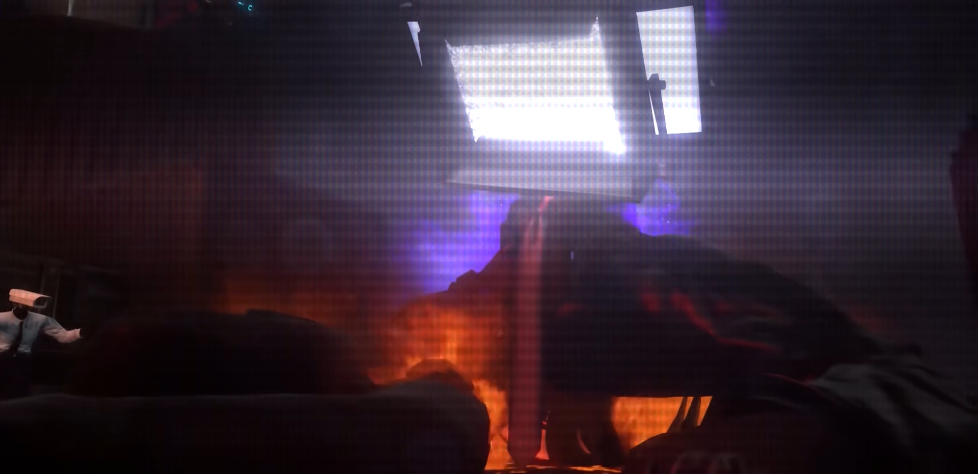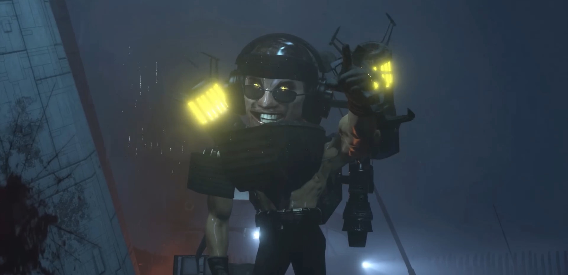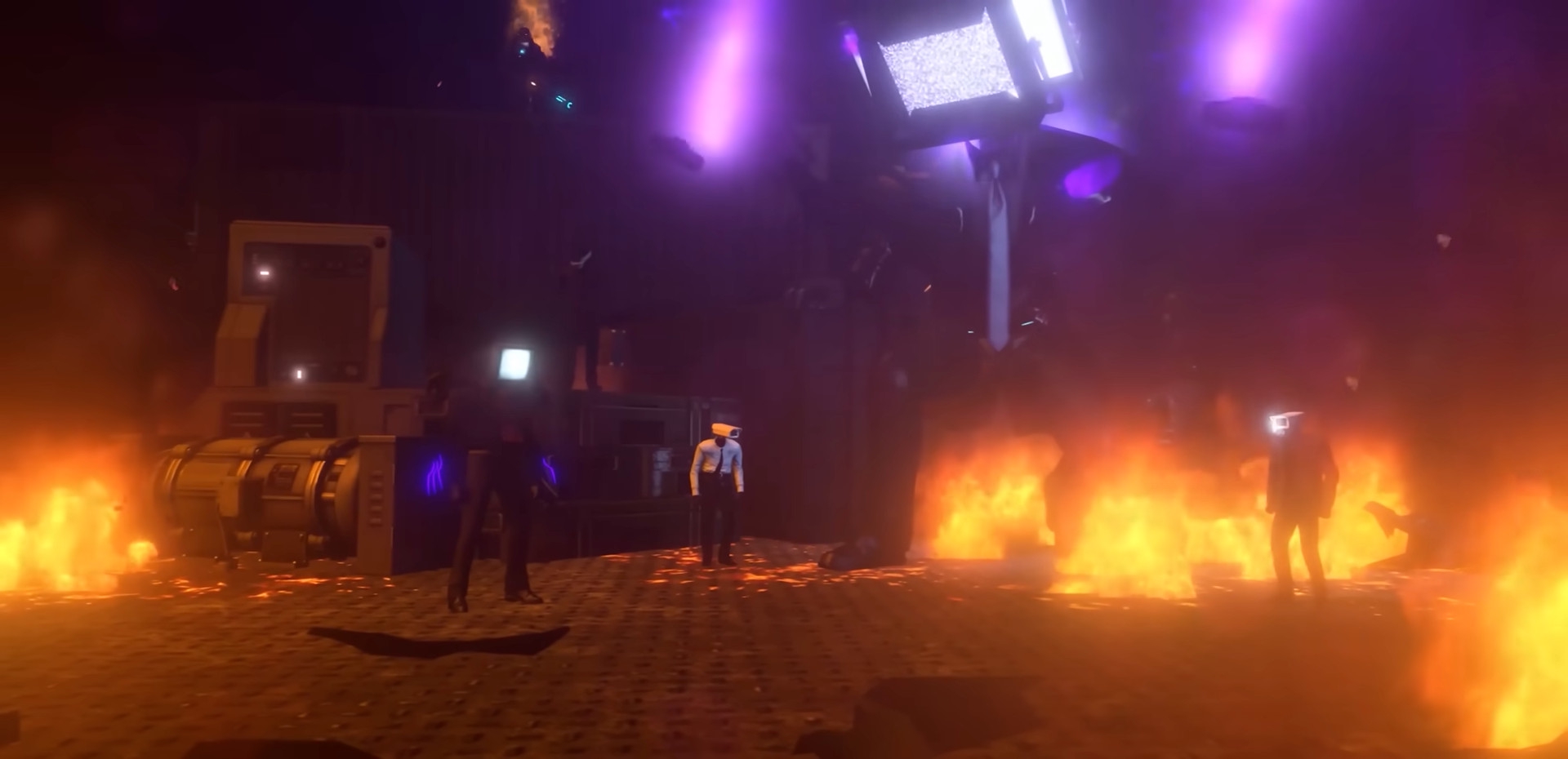 Агенты прекращают стрелять — ДафакПук хочет, чтобы дальнейшее представление выглядело покинематографичнее. Образуется дым телепортации, гремят молнии.