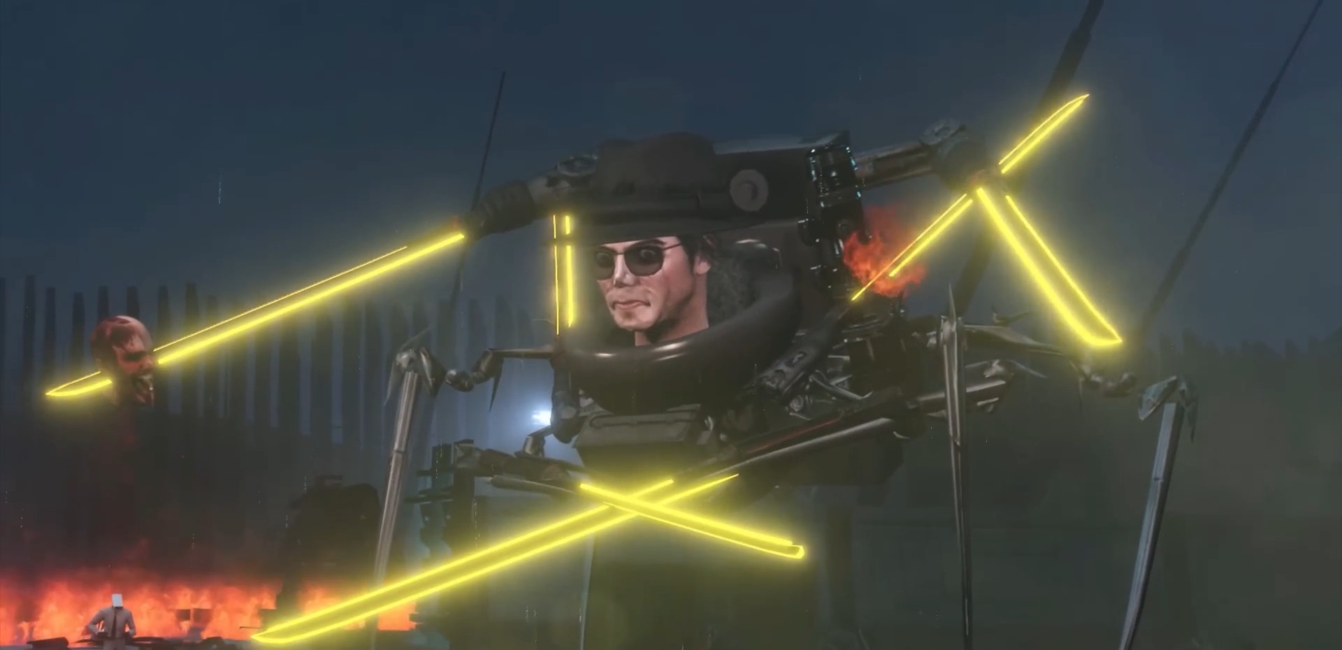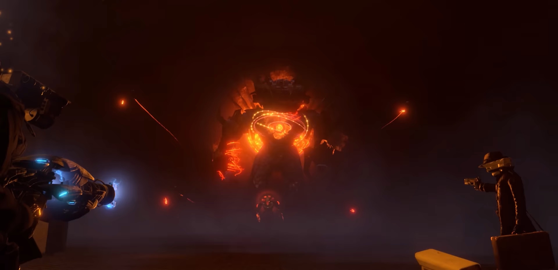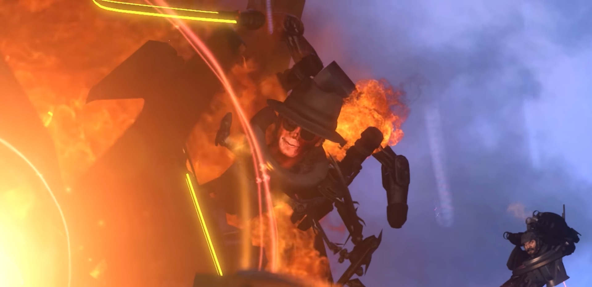 Агенты прекращают стрелять — ДафакПук хочет, чтобы дальнейшее представление выглядело покинематографичнее. Образуется дым телепортации, гремят молнии.