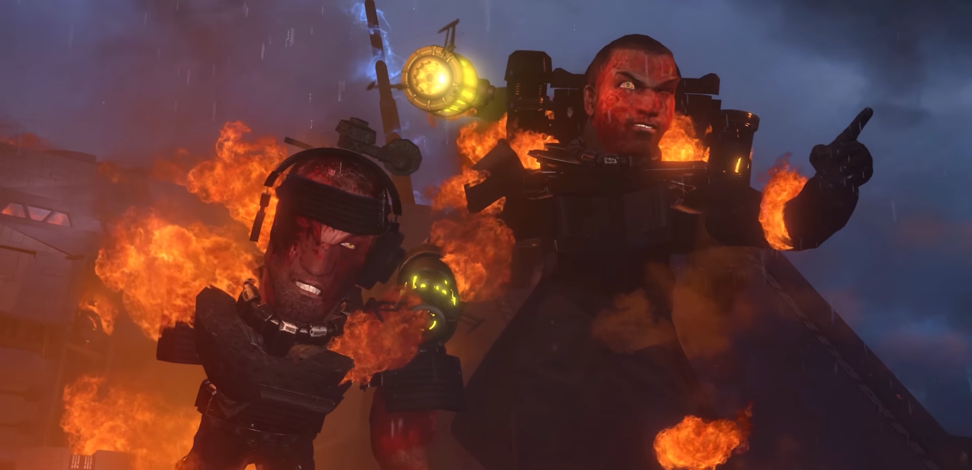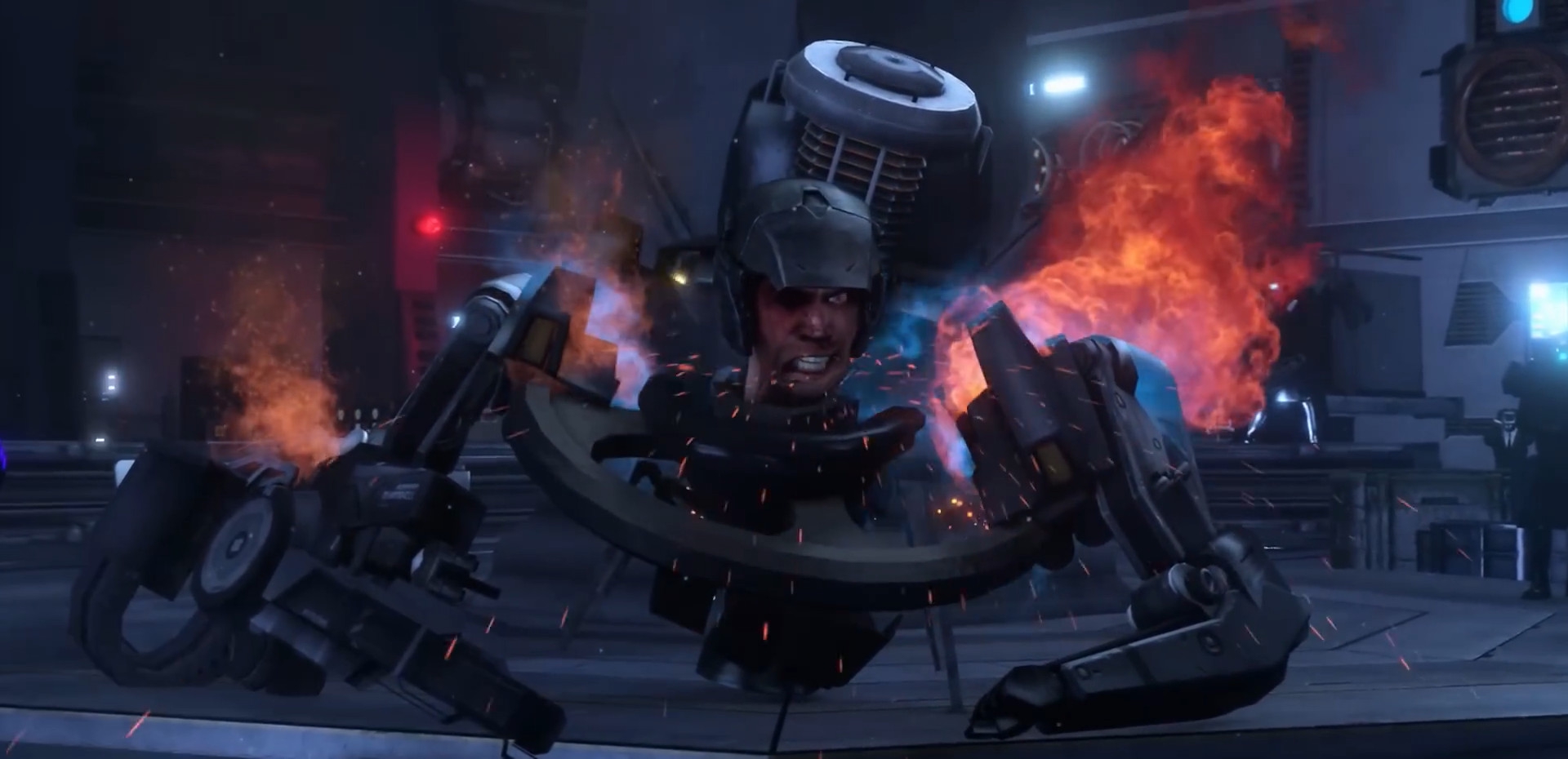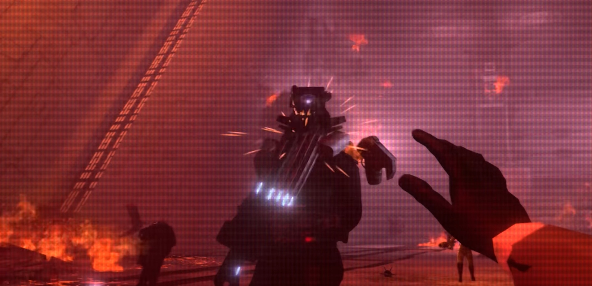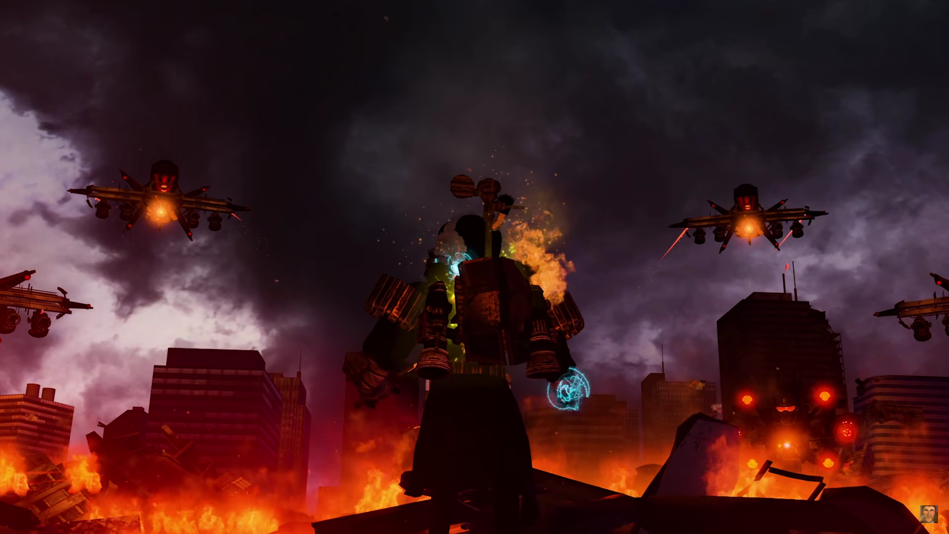 Агенты прекращают стрелять — ДафакПук хочет, чтобы дальнейшее представление выглядело покинематографичнее. Образуется дым телепортации, гремят молнии.