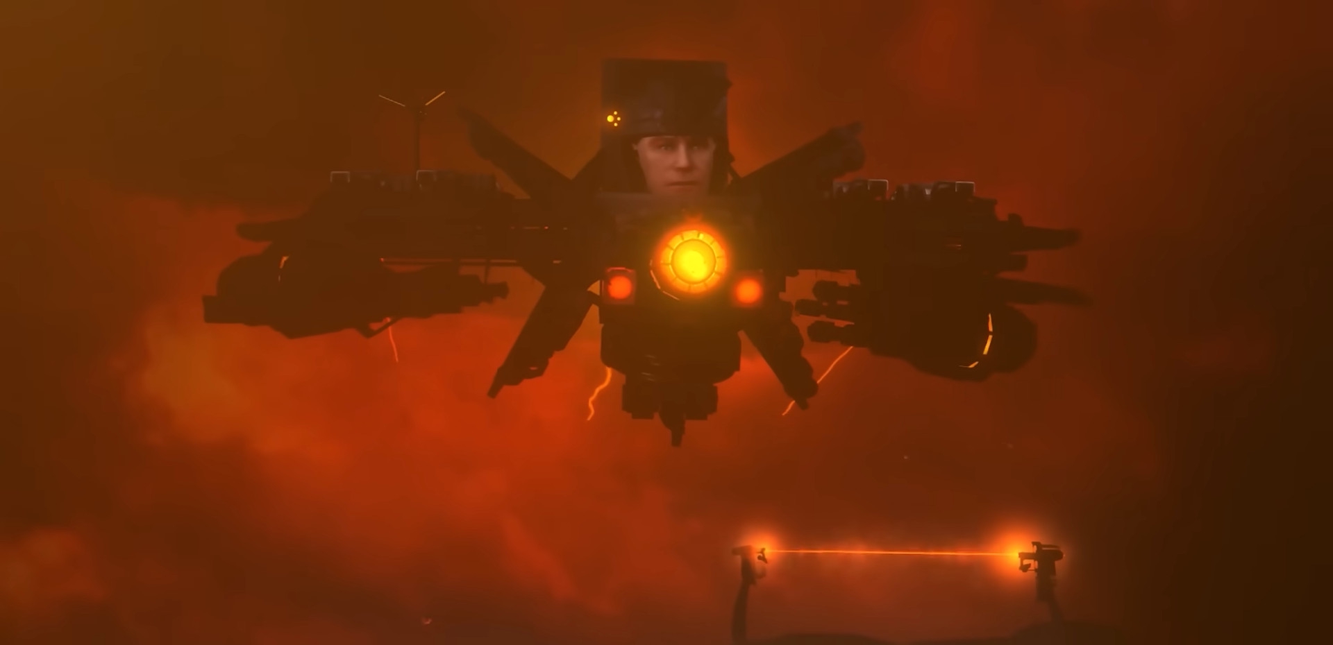 Астро-Герцогиня надевает прикольные очки-звёздочки. С крыльев штурмовиков, висящих в воздухе рядом со Стражем, слетаются 4 телевизора, загораются суицидальным красным свечением, прекращая все выстрелы со стороны базы камераменов. Сами камерамены замирают и впадают в ступор, готовясь начать самоубиваться. Дальше умирает камера POV-Спикера и высвечивается надпись =CAMERA OFFLINE=.
