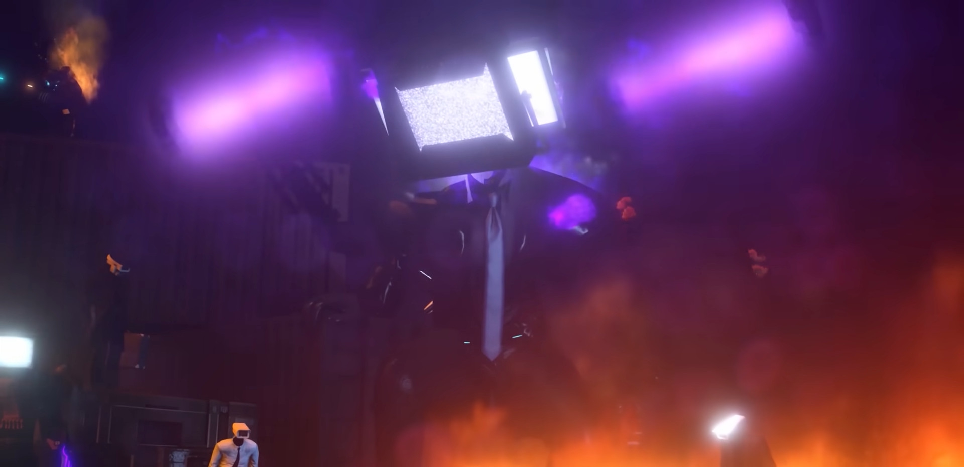Их пытается остановить POV-Спикермен, понимая, что они в этой катке нихуя не вывезут против ТВ-Титана, но всем поебать. Возникают вопросы к тактике дебилов (которой нет) и на что вообще дебилы рассчитывали, когда выходили без серьёзного снаряжения сражаться в лоб, чтобы самоубиться об врага, не нанеся тому серьёзного ущерба.