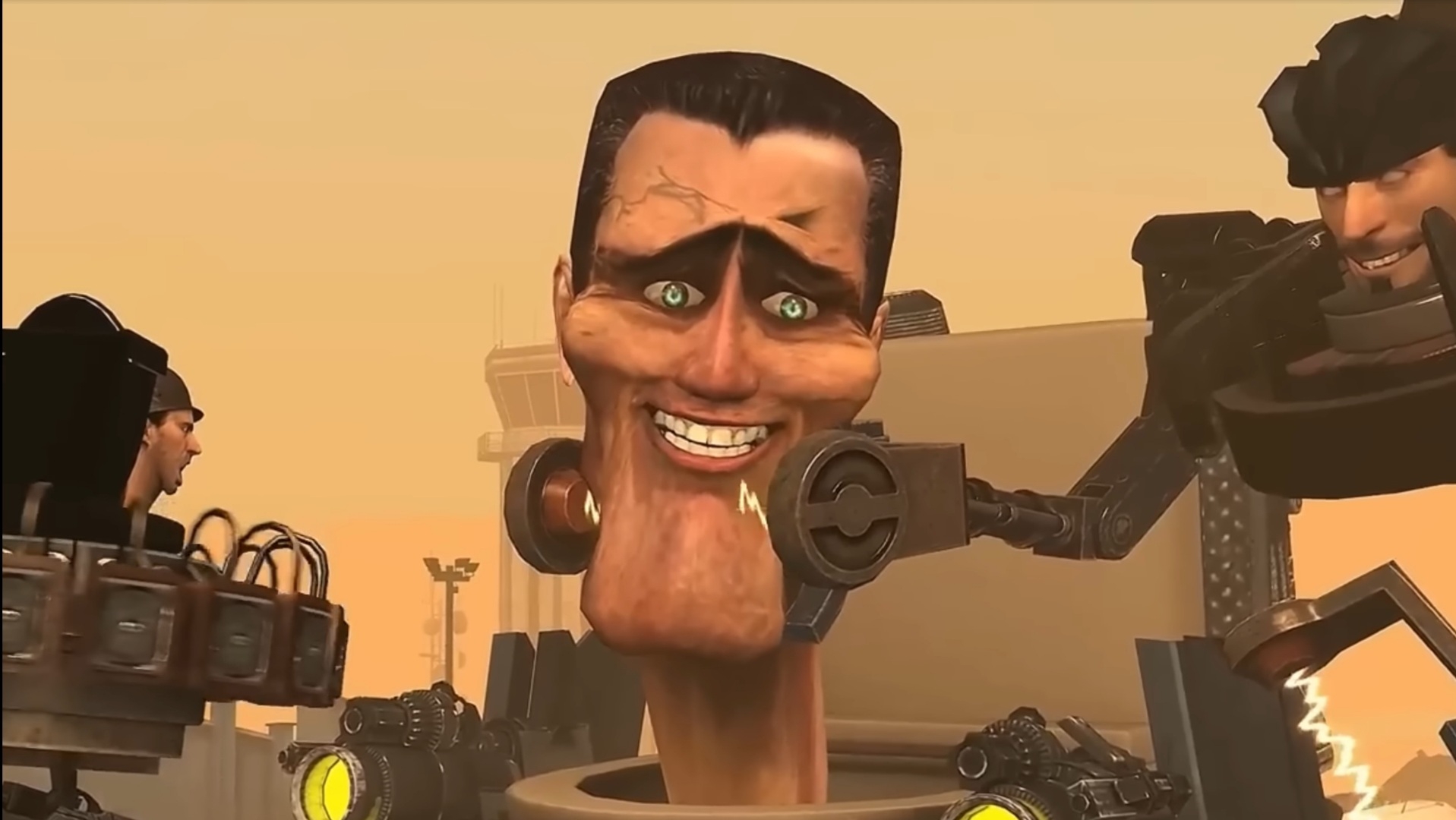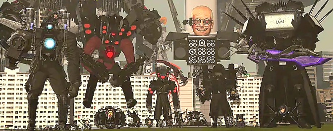 На базу уже успели накинуть каких-то статистов, чтобы те убились об хуи хуястых мутантов G-Squad'а. Здесь Скибиди-Берсерк (размазавший об стенку какого-то хохла), (сказавший NICE выстрелу камера-турели), (чуть позже заценивший работу Майкла Jackson'а), Майкл Jackson (начистивший мечами рыло какому-то астрюку), и Скибиди-Маfиозник, (со времён последнего появления получивший много AURA), (ставший полу-титаном в противогазе), (раздавивший Astro-Huesos'а ногой).