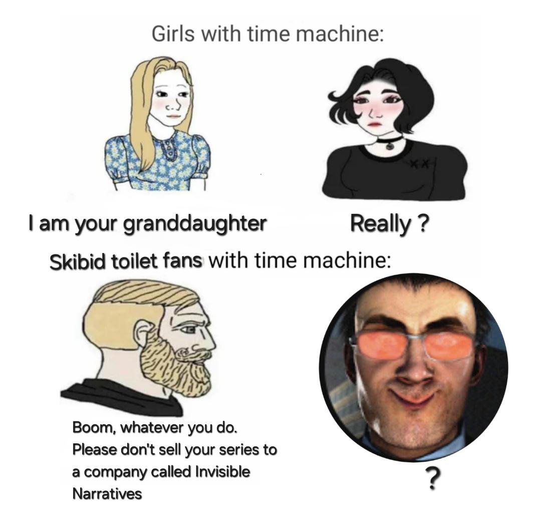 Нормально изложил мысль, что Фандом Skibidi Toilet огромен и никогда не умрёт, даже если не смотреть творчество Дафака/Инвизов. Есть куча разных фанмейдов, с отдельной историей, и дело будет жить дальше