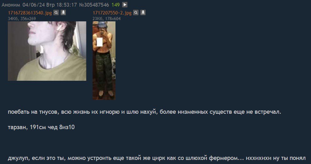 >>7364629 Это я выдумал, просто не понятно почему этот анон залил данного человека на двач и рейджбайтит люто. Судя по всему мстит на двачике ибо по другому не может, слишком чмо.