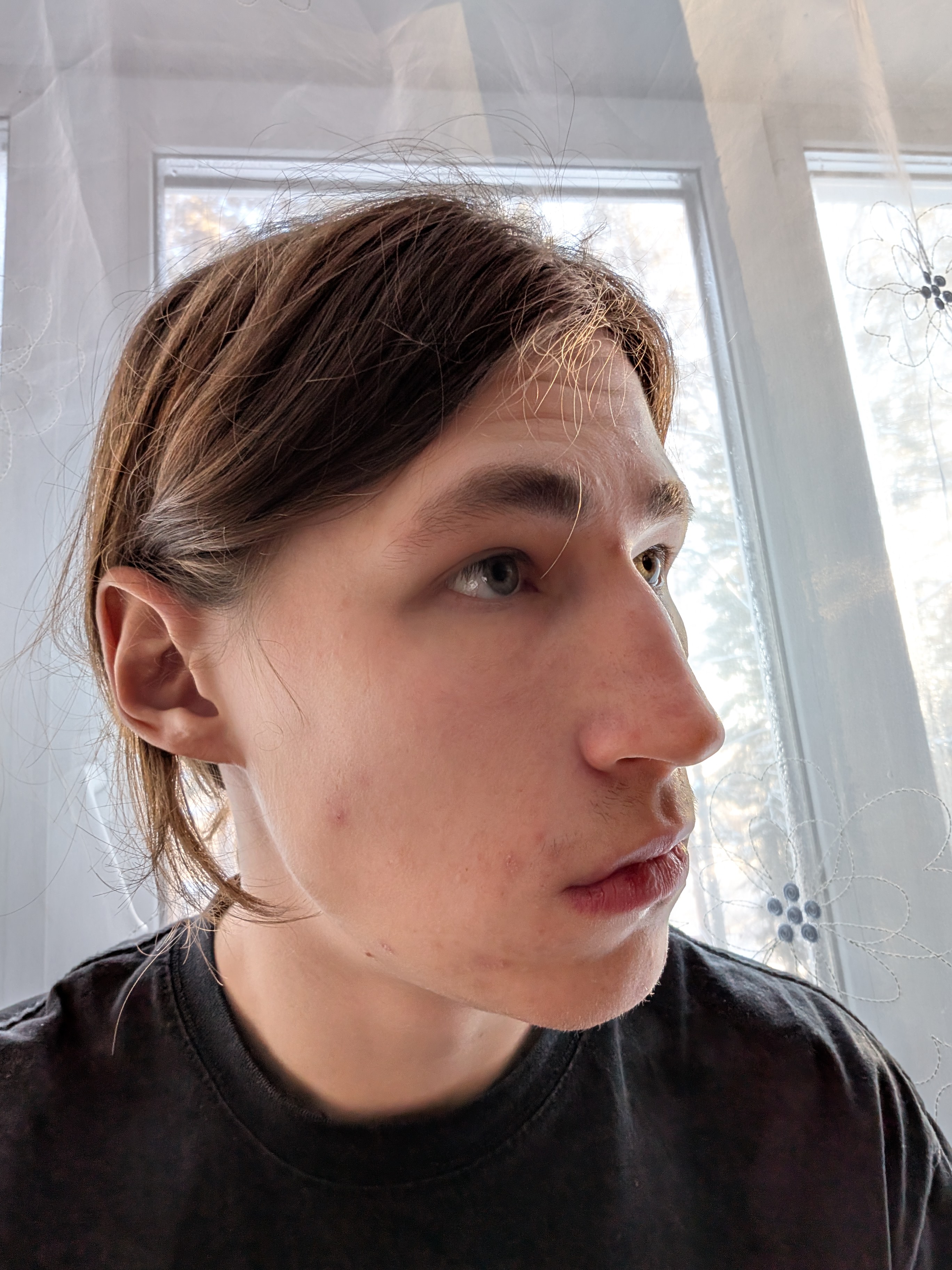 >>7362892 >>7362871 Теперь понятно. Сильно замазывал себя нейросеткой и мимикой, что не понять было адекватно внешность в целом. По второй фотке на (6-7/10) спокойно.