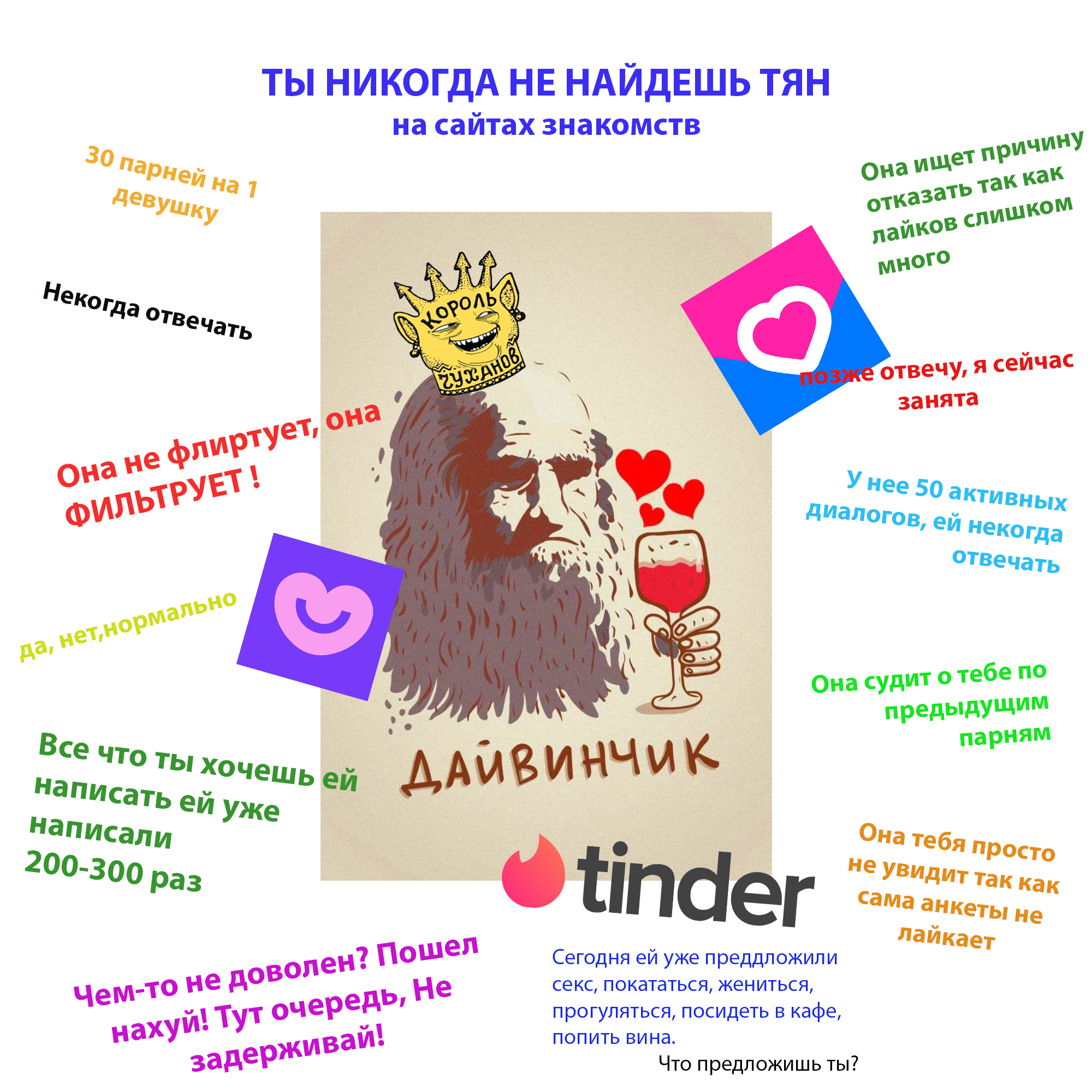Короче, говоря - если вы не красивый, если вы не хотите быть симпом, в котором видят лишь ресурс - забейте. Пёзды туда заходят в основном внимание лутать и наедятся на чэдика. Дэйтинг в Пахомии умер, потому что сами натрашки - это мусор, охуевший от вагинокапитализма. Инцелы правы во всём.