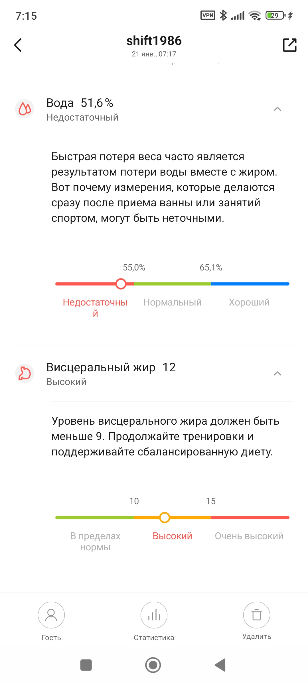 сегодня нашёл в себе смелость взвеситься. удивительно как я умею угадывать вес. я не взвешивался наверно год или около того. и подумал ну наверно в районе 76-78, скорее всего 77. и весы показали ровно 77. умные весы сообщили что у меня индекс массы тела выше нормы, то есть лишний вес. так же у меня высокий уровень жира в организме, выше здорового диапазона, и хилые мышцы