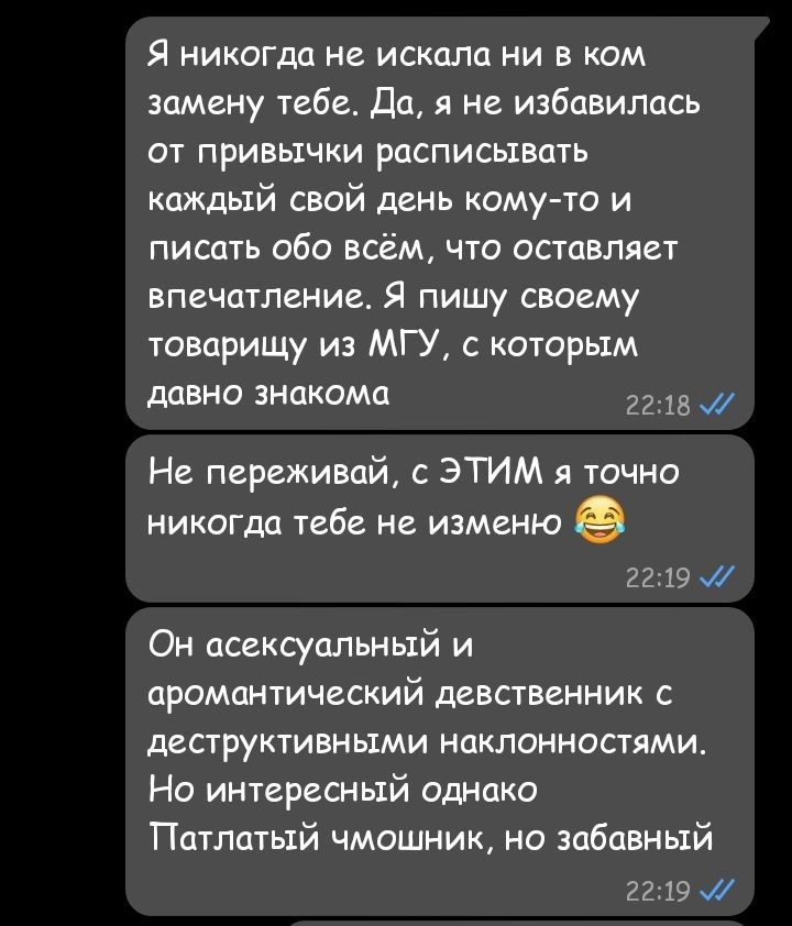 ничего себе быстро. писал я это году в 2014-2016 где то в эти периоды наверно, если не раньше не в 2013ом каком нибудь вообще. а "получил тяночку" в 24ом году. 10 лет! я бы не назвал 10 лет "не сразу срабатывает". я бы сказал что это пиздец как долго срабатывает, большинство людей столько тупо не проживут, умрут от инфаркта или от отравления алкоголем или на так называемой специальной военной операции
