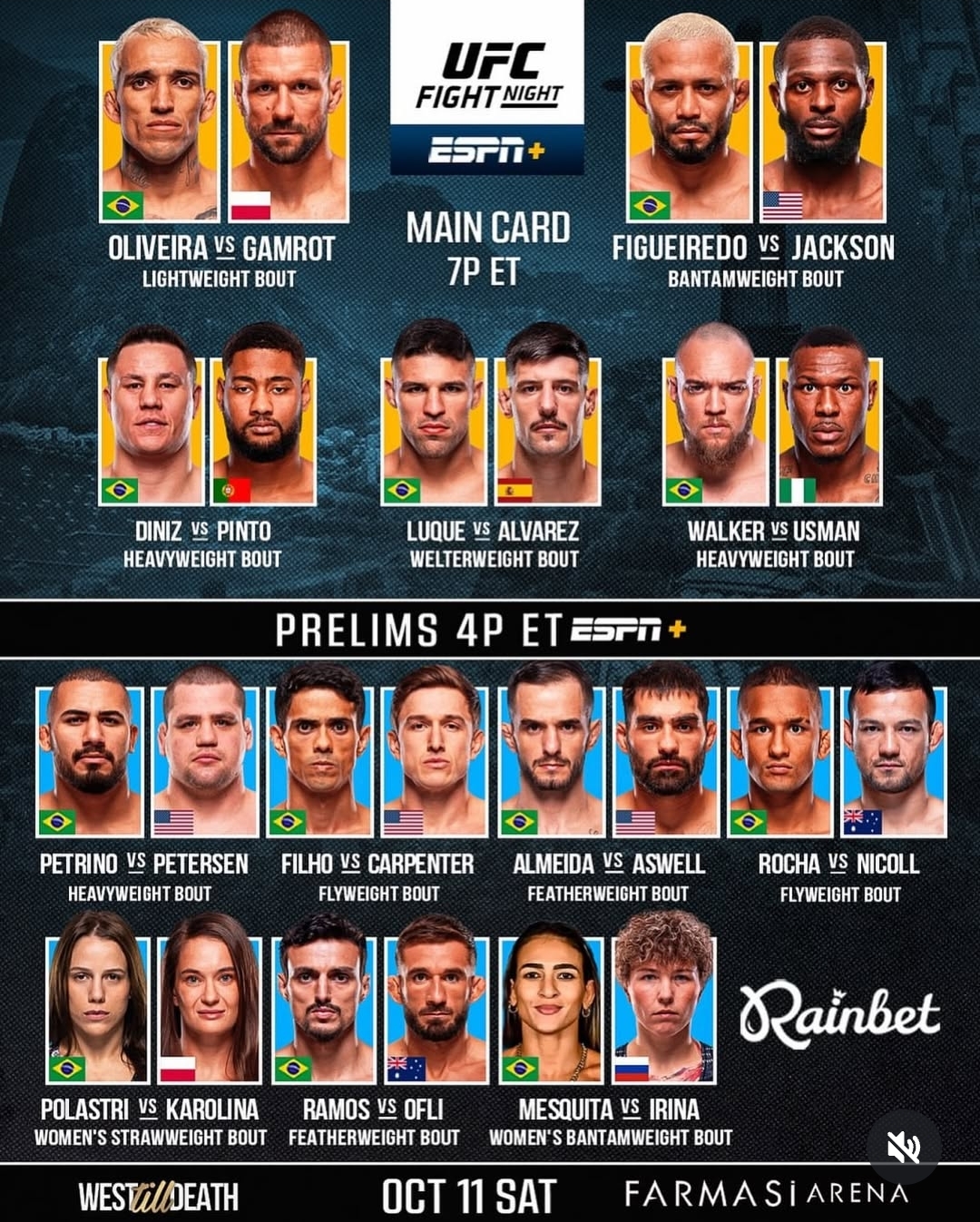 Копылов, наконец-то осознал свой уровень и перешёл в женский дивизион, одобряем. Фигерейдо закрывает поражение победой над мешком. Альварес и Гамрот последняя надежда легкого дивизиона. Ковалькевич трахать. Про позорника Оливейру вы итак все знаете