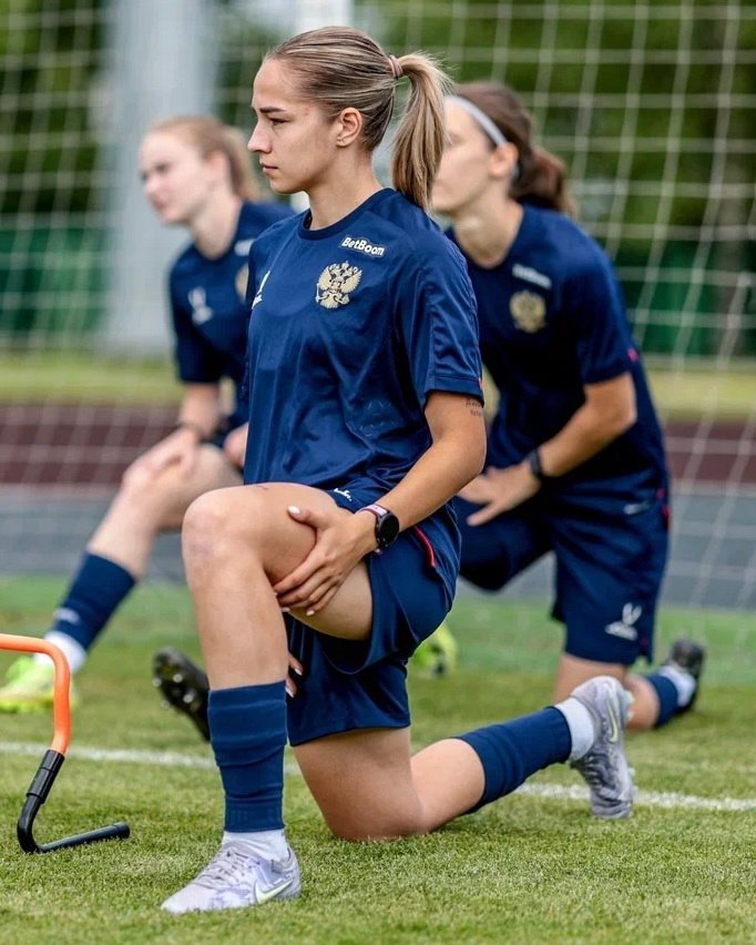 инстаграмные пёзды трясут жопами в футбольной форме. Почему то любое появление баб где либо выливается в показушничество и фотографирование своей жопы и сисек. Нахуй нам такой футбол не нужен, эскорт какой то