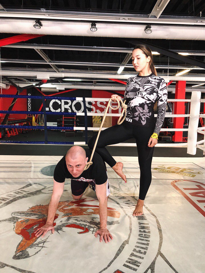 Боролся с девушкой в партере. Поддался, она оказалась сверху. Девушка няшная. Но не сверхопытная, поэтому допускала определённые оплошности. А мне это и надо. Начала продвигаться по мне для выполнения рычага локтя. И села мне по сути на лицо жопой. Я занюхивал как конь. Хотел губами поцеловать сраку в кимоно. Тут она начала выполнять приём. Когда пыталась зафиксировать ногами, пяткой упёрлась мне в лицо, ведь она не видела ничего кроме руки. Пока она сообразила, я уже провёл губами по пяточке и лизнул пятку.