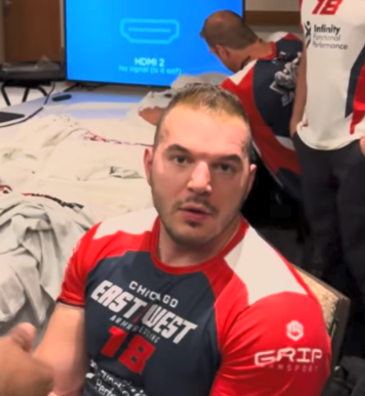 Иракли Зиракашвили: Привет народ, как вы уже могли видеть, после матча с Рустамом Тодд сделал шуточный комментарий о нашем предыдущем матче. Как я вижу, он до сих пор не воспринимает всерьёз свои фолы локтем, которые судьи не видели. Это раунды, которые он выиграл в технике летающего локтя, вы можете определиться о том, насколько это хорошо, но армрестлер знает, что когда силы находятся в одном и том же районе, такой прыжок локтем абсолютно важен. На матче с Рустамом у него были проблемы с локтем, но на этот раз это ему не сошло с рук. Мы все должны уважать и играть по правилам, нравится вам это или нет.