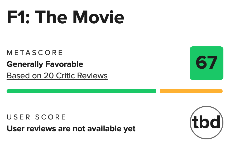 >Гоночная драма «Формула-1» собрала за первый уикенд 55,6 миллиона долларов в США и 144 миллиона долларов по всему миру. Об этом сообщили в издании Variety. >Картина с Брэдом Питтом стала первым коммерчески успешным проектом Apple в кинотеатральном прокате. >«Формула-1» получила высокую оценку «A» от зрителей по версии CinemaScore. На Rotten Tomatoes у фильма рейтинг 97% по мнению пользователей сайта и 83% от журналистов.