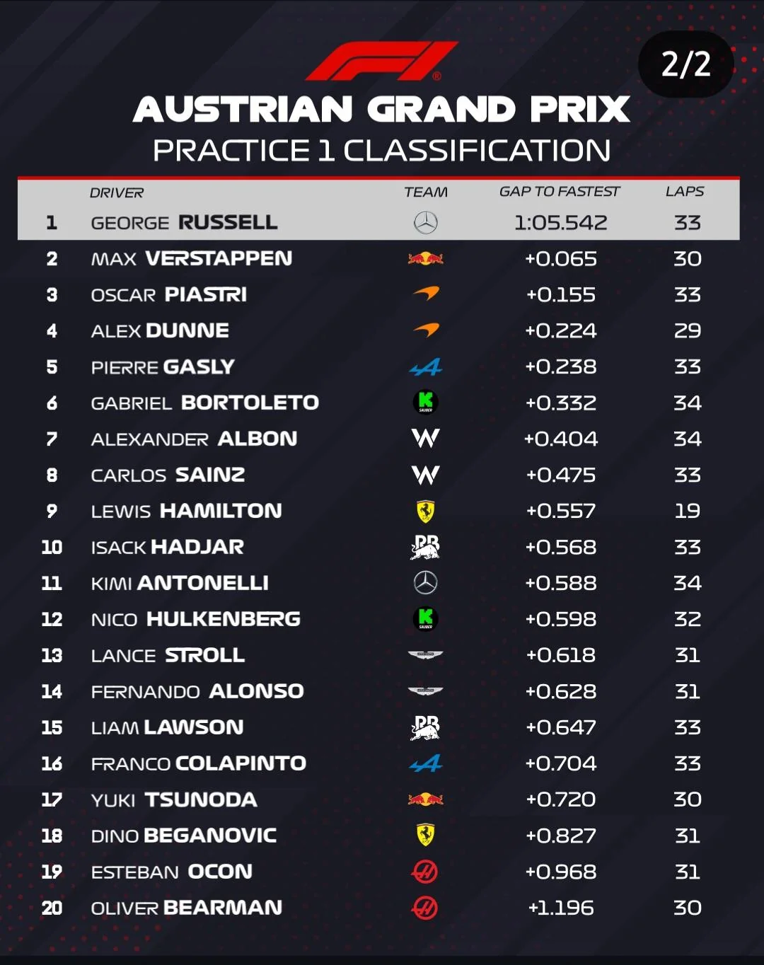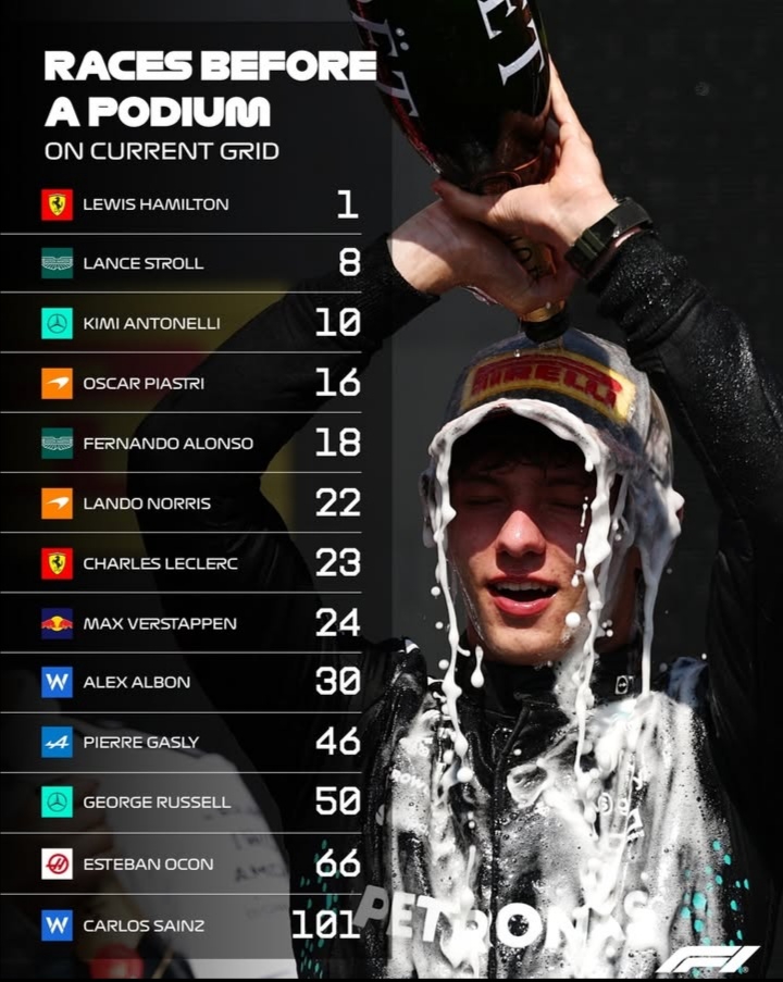 >Kimi Antonelli is the first Rookie to finish in the Top 6 in 5 of his first 6 Grand Prix since Lewis Hamilton in 2007, who began his career with 9 consecutive Podium finishes