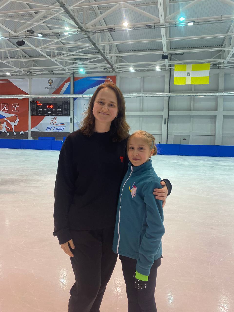 >9 ЛЕТ. 💣 >Это период тренировок Лены с Инной Германовной Гончаренко . >Обычные тренировочные будни. >Я решила снять прокат дорожки из КП >С Леной на льду работает Орлова.