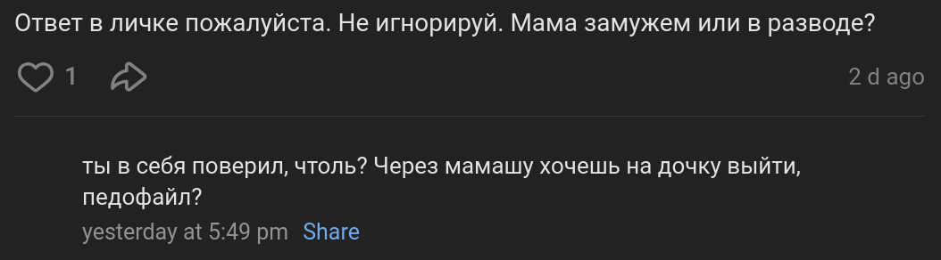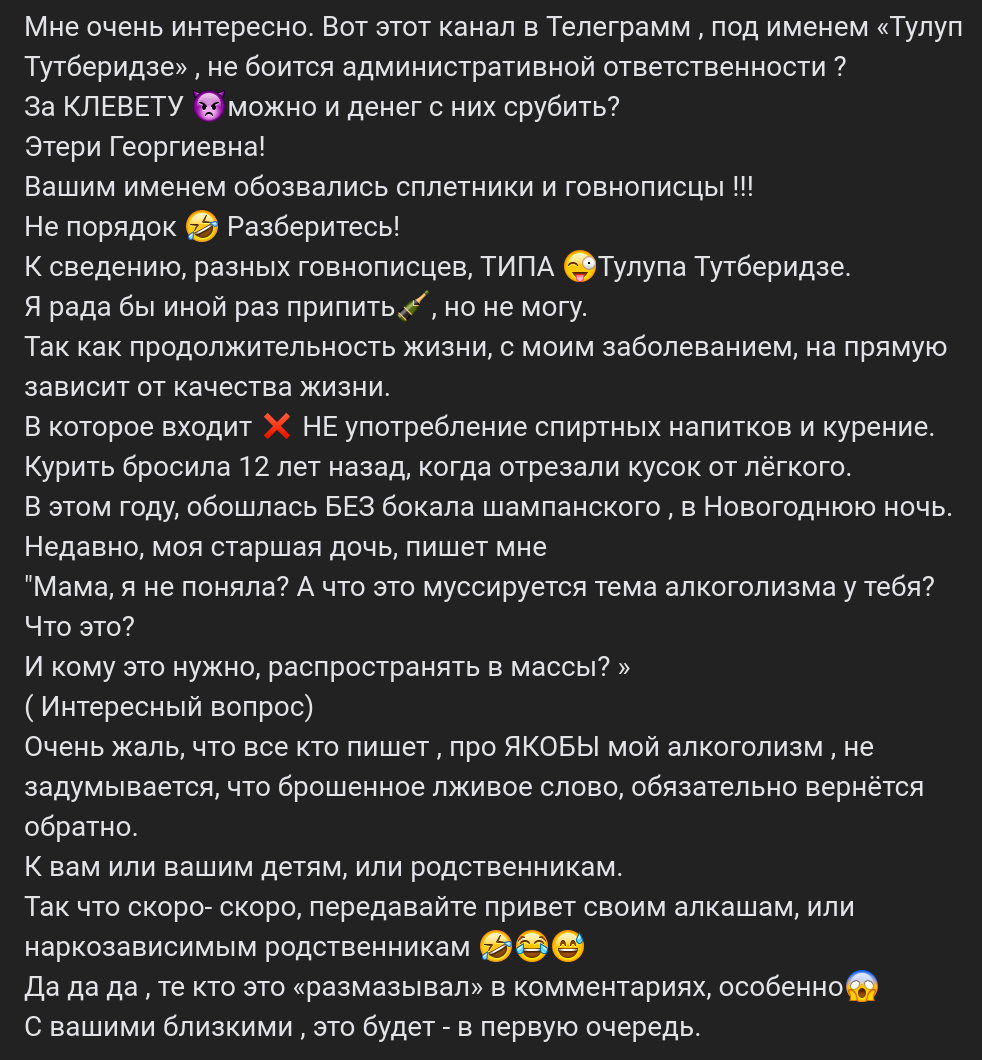 >>3224852 надеюсь, что это дипфейк. Нельзя же такое о дочери говорить публично. Это подстава. Ругаться с Яночкой или Спрутами это норм, рабочий процесс. Но публично ругать дочь это уже дно ... Тёте Ире надо нервишки подлечить.