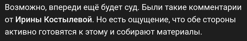 >>3218891 >Фактически ещё ничего не кончено. Обращение Татьяны А. остаётся в силе, история ушла на доследование. То есть правоохранителям на текущий момент как бы не хватило доказательств. Соберут - и могут возбудить снова.