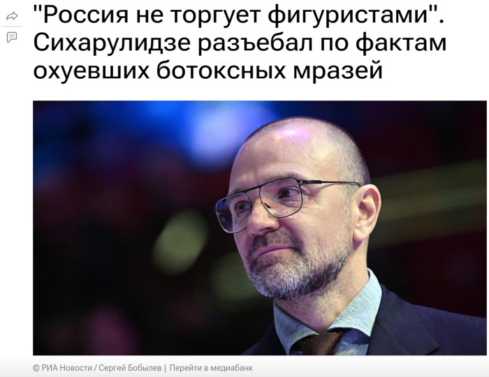 >Когда возник этот вопрос, сразу же объяснил Евгению Викторовичу (Плющенко) позицию ФФККР и свою личную, опираясь на юридические документы. В СМИ и социальных сетях Плющенко не проявлял активности и не высказывался по вопросу перехода Жилиной. Думаю, он сообразит, что нужно делать сейчас в интересах российского фигурного катания, а значит, и в своих собственных интересах», — сказал Сихарулидзе.