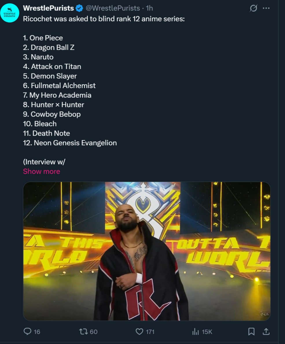 Я лично пока дропнул просмотр реслинга (ЦЦУ) после кика кросса, хз, типа его и так было не много, но пока он был была надежда на то, что ему дадут норм сюжет, ибо он мне сразу понравился, как только я впервые увидел его в прошлом году.