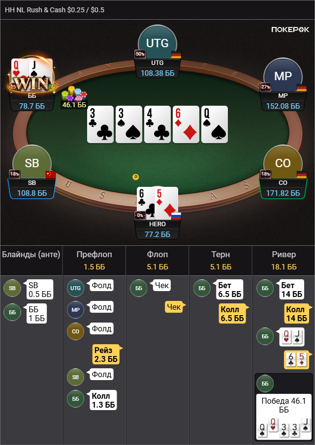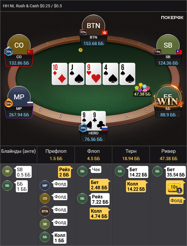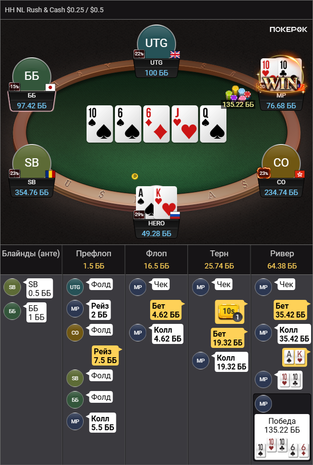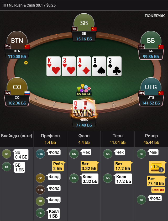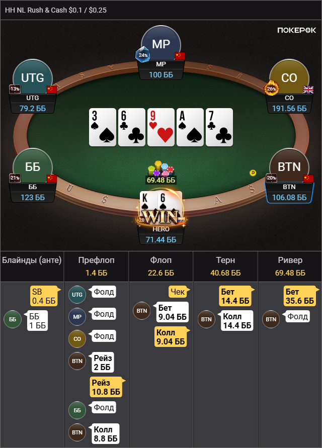 >так что колл вроде натягивается Да там пиздец сессия была, 500 рук тупа каждый банк проебал, это для раша немного, но этого отрезка хватило чтобы зашугался и выкинул АКо в ужасе.