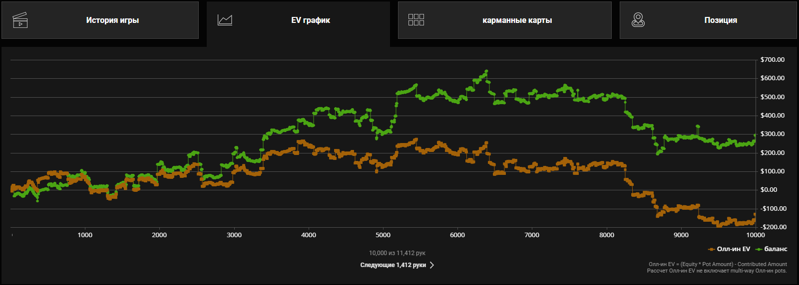 Пиздос. 5 раз зарубался 100bb 80% на 20% и 4 раза поделили две доски и один раз проиграл... Вот почему у меня постоянная недодача по EV? Реально уже который год 10 месяцев из 12 недодача.