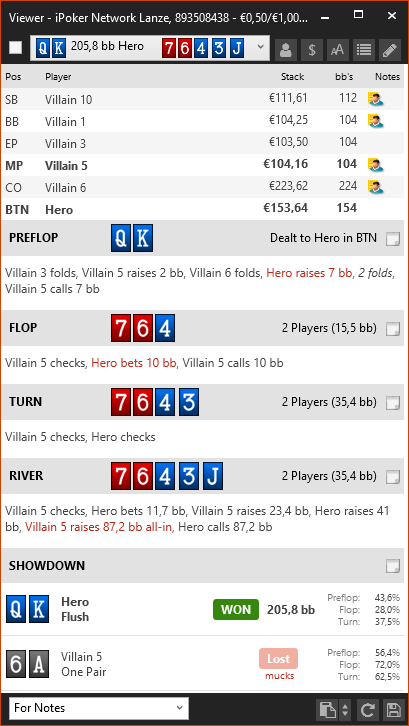 Вот за что я постеров не люблю изолировать, так это то что они за этот 1bb оставленный вне очереди удавятся. Начинают какую-то дичь творить постоянно и сиди гадай, зашёл он с 53o или просто не хочет отдавать свой блайнд. И почему в HM3 не показывается постер в view? Пришлось форумную версию делать...