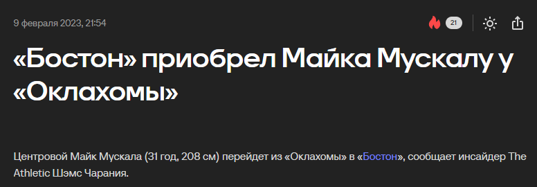 >>3222716 Как это вообще. Чё это. Недавно увидел новость. Холидей полкарьеры был самым недооценённым игроком Лиги, а вторую половину карьеры наоборот. В текущем сезоне за Бостон он ключевая деталь провала(сразу после дебила Мазулы). Огромный контракт, нулевой скоринг, нулевой дифенс, околоплюсовой розыгрыш. Это буквально худший человек старта. Брансон его разматывал так же, как Батлер в своё время. И его меняют в конфу, где есть Карри/Батлер, Дончич, Эдвардс, Морант, Мюррей, Фокс. О какой борьбе за плов для Портленда пишут аналититки? При этом, Портленд отдаёт хорошего скорера(намного лучше того же Грина, как минимум более умного) в прайме, доплачивая пиками, пусть и второго раунда. Скорее всего, масоны и Гомосильвер в ложе решили подбросить кость Бостону, другого объяснения такому трейду я просто не вижу.