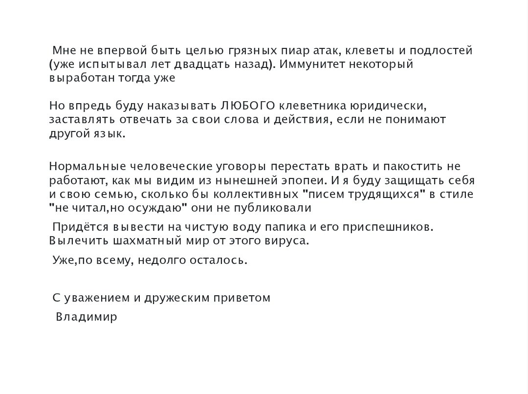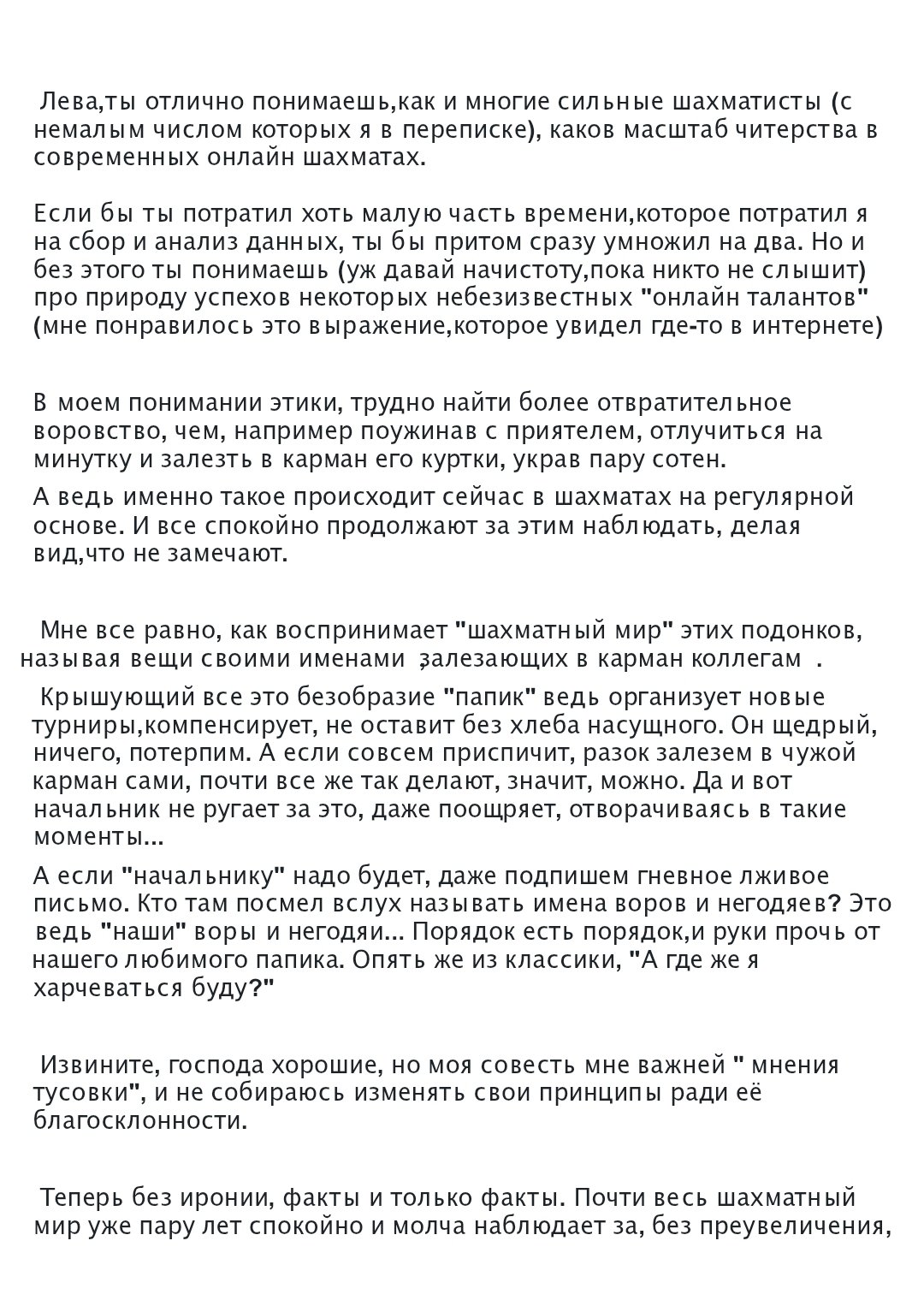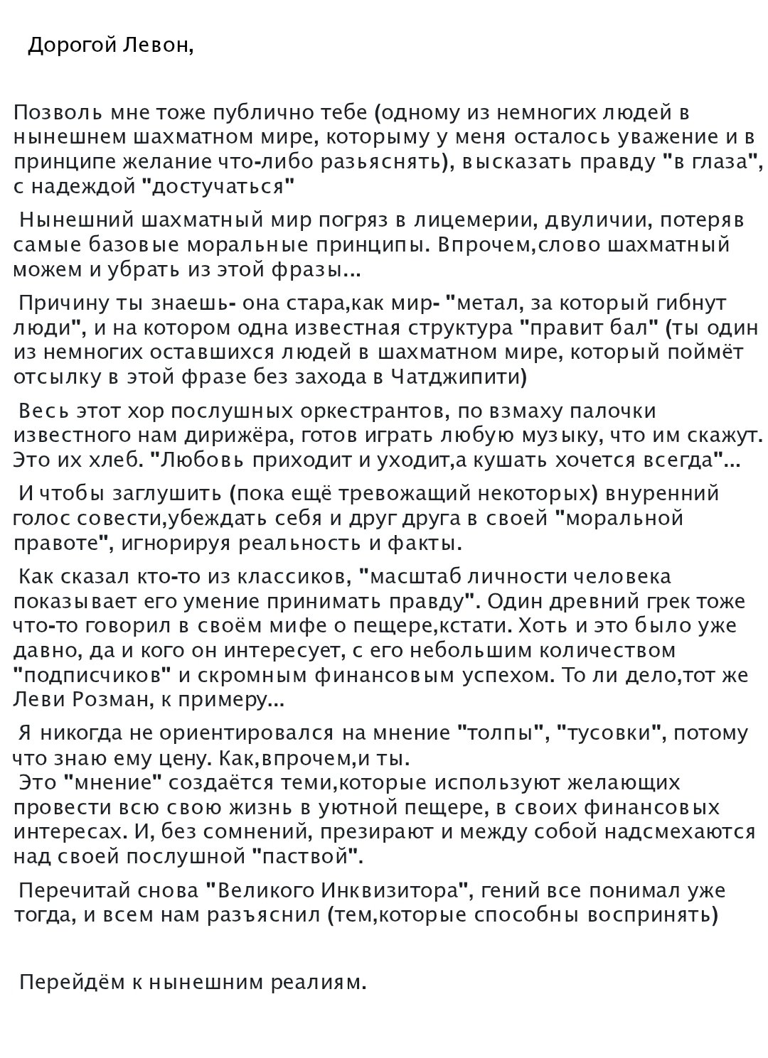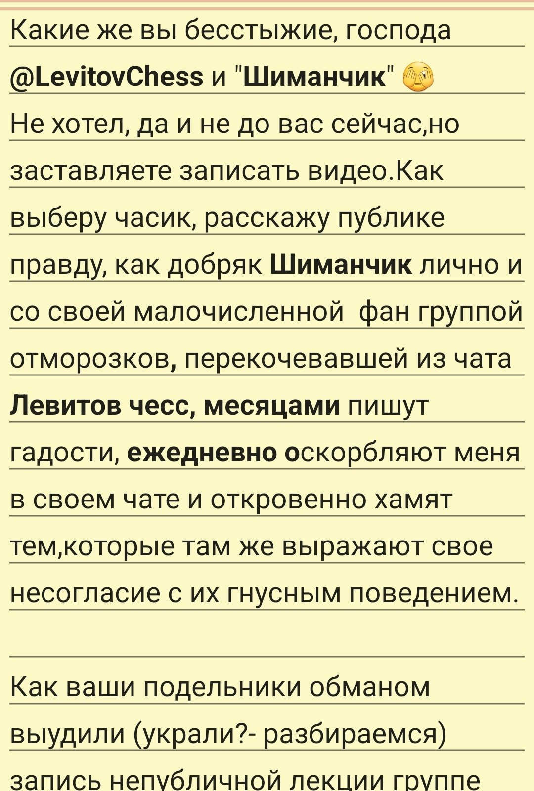 >>3224711 Жёстко это адресно, с именами, явками и паролями. А это так, эзопов язык ака пук в лужу. Кого он там пнул? Одного разнесчастного еврейчика Леви, который просто рубит свой гешефт штоб я так жил таки да? Если ты такой правдорубчик мамкин, ну так пиши поименно, qui prodest. Боишься исков? Или паранойя ебет? Хочешь сказать, что ФИДЕ прогнило насквозь? Так оно прогнило ещё со времён Кампоманеса, и всё никак не сдохнет.