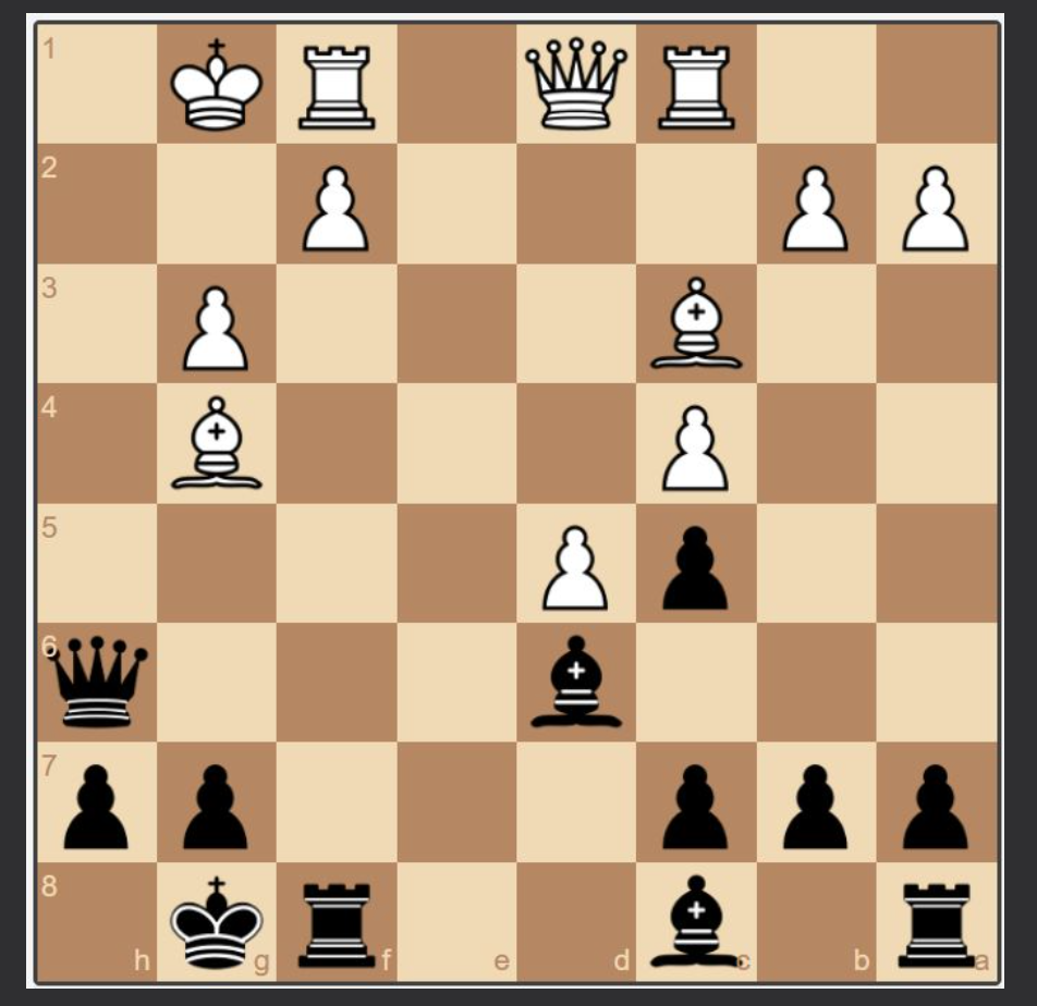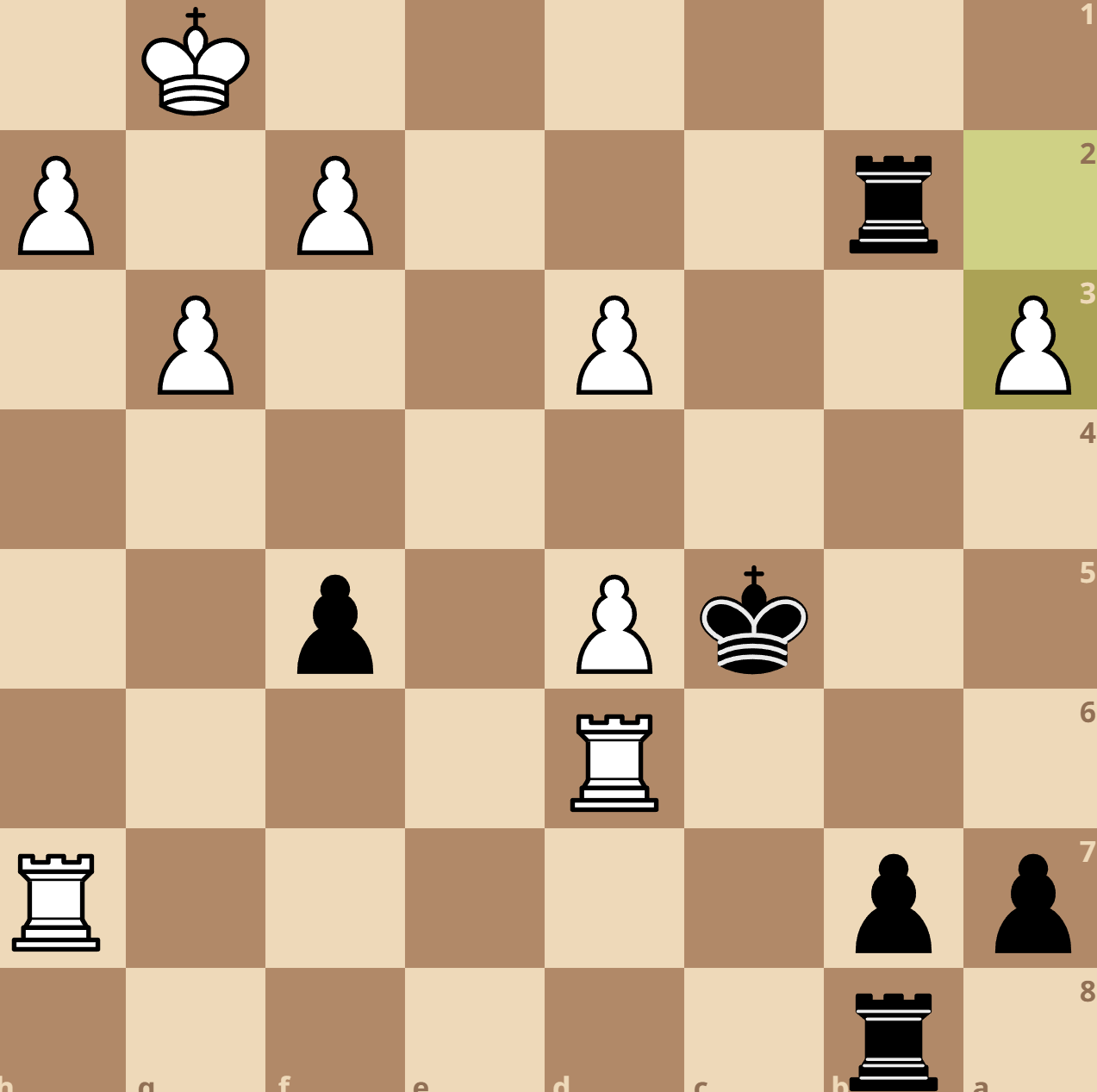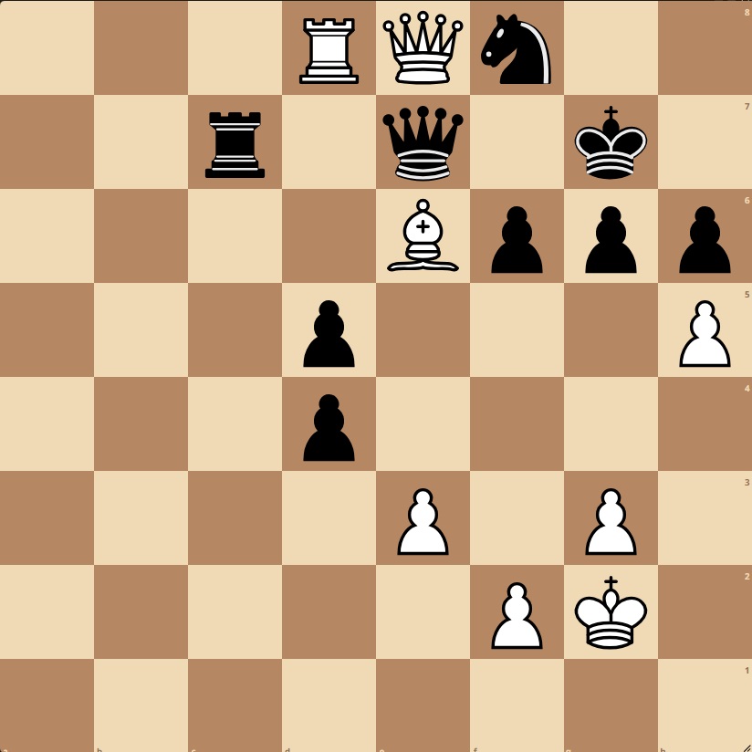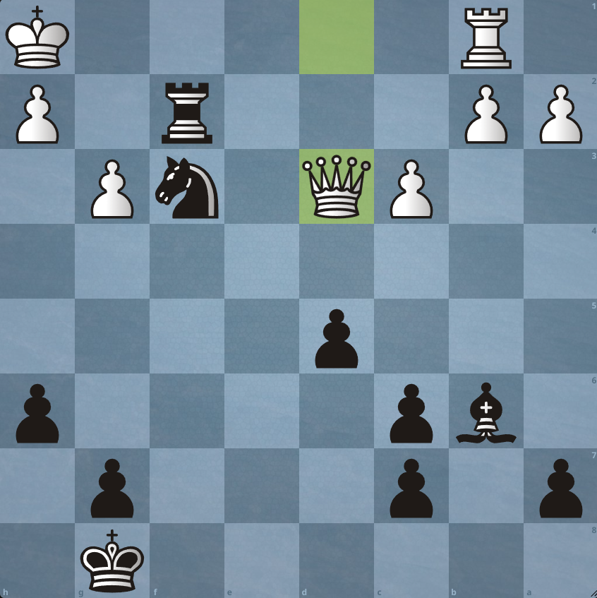 >>3241851 >Ферзю приходится уползать на с7/с8 >чтобы прикрыть от мата ладьей поле d8 Нельзя там ходить ферзем куда либо потому что ладья белых дает шах с д8 и ферзя черных приходится отдать единственно возможным ходом